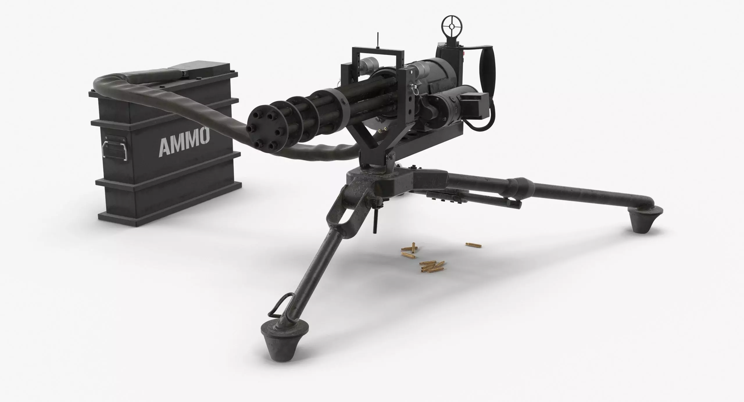 This M134 Minigun Tripod Mounted and Ammo Crate Dirt is a high quality, photo real model that will enhance detail and realism to any of your rendering projects. File units - cm. The model has a fully textured, detailed design that allows for close-up renders, and was originally modeled in 3ds Max 2014 and rendered with V-Ray.