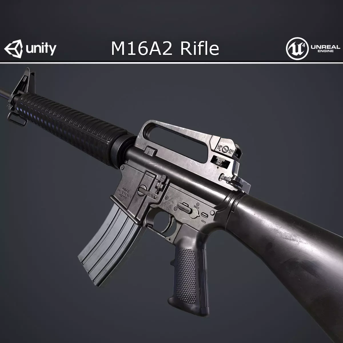 Game ready M16A2 Rifle for PBR game engines/renderers. Modeled in 3ds Max 2021.