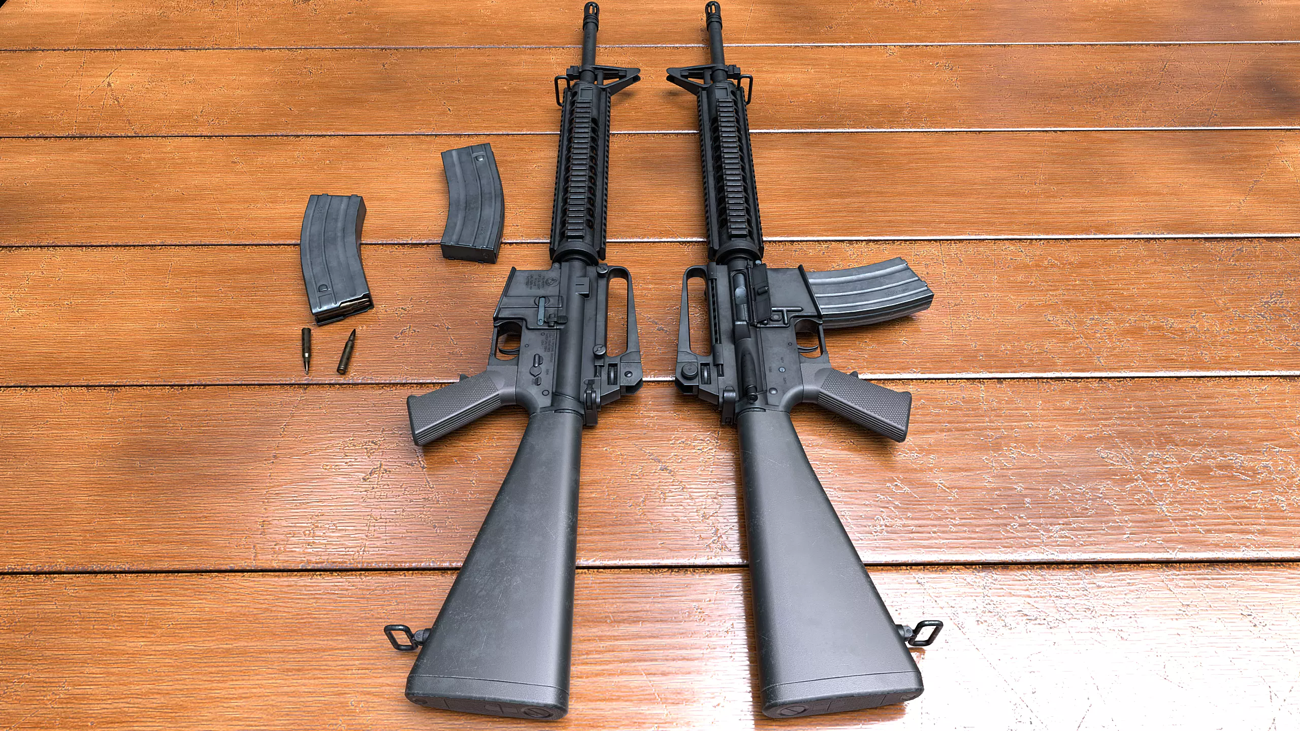 7 texture sets for upper receiver, lower receiver, buttstock, handguard, mag, carry handle, cartridge, respectively.