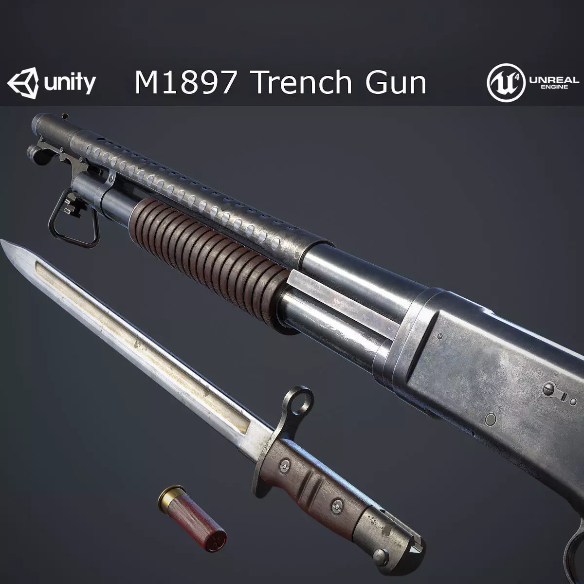 M1897 Trench Gun Low-poly 3D model