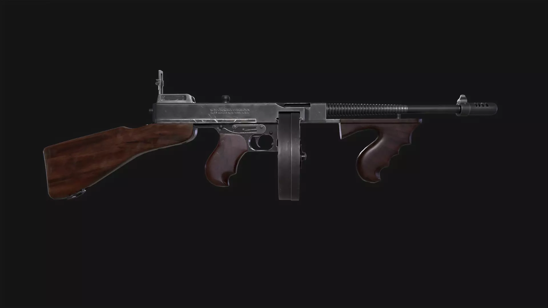 Low-Poly M1928A1 Thompson Submachine Gun Animated Model for games, animated films, etc.