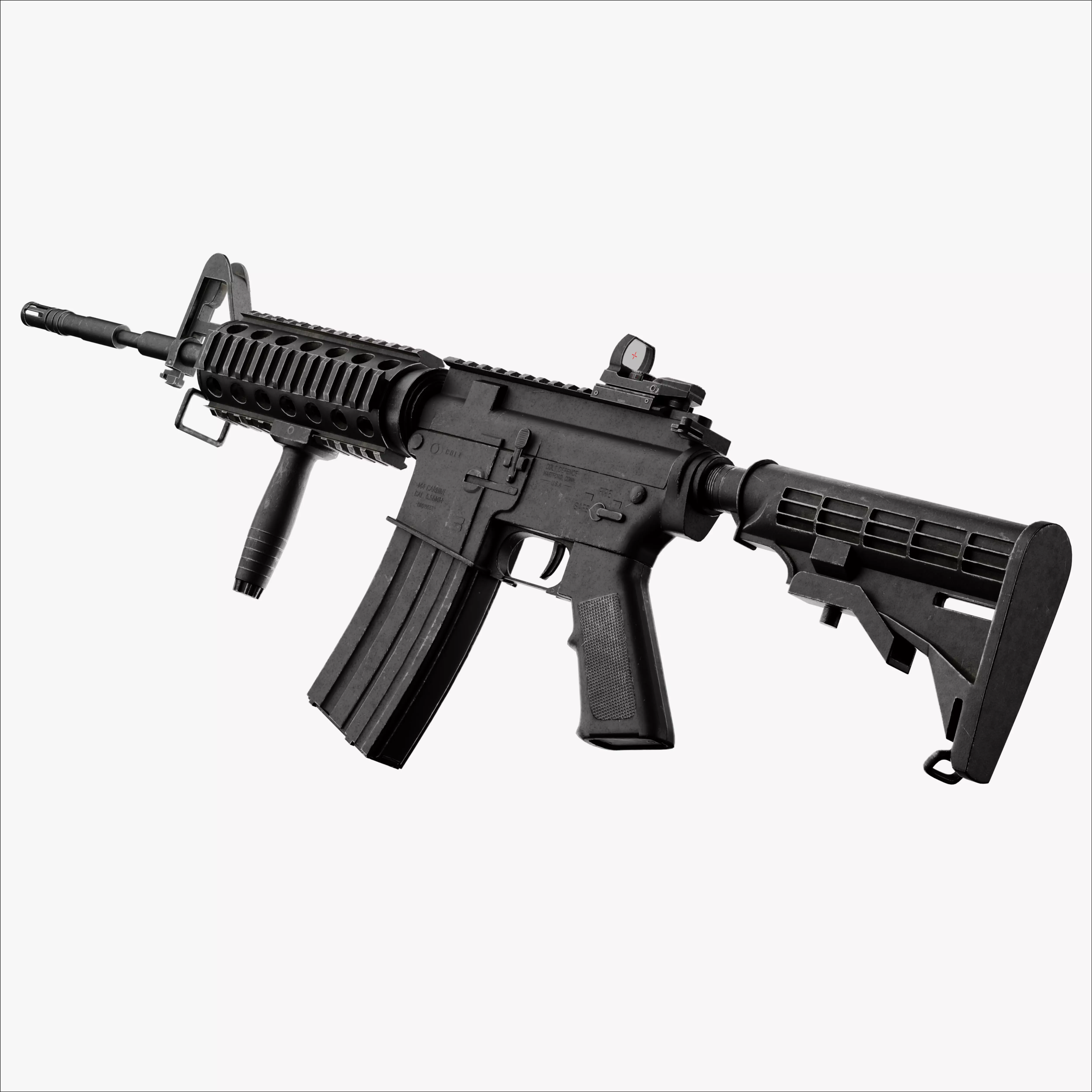 Included Objects in the model:-M4 Rifle-Vertical Foregrip-Red Dot Sight-5.56 Bullet-M4 Magazine