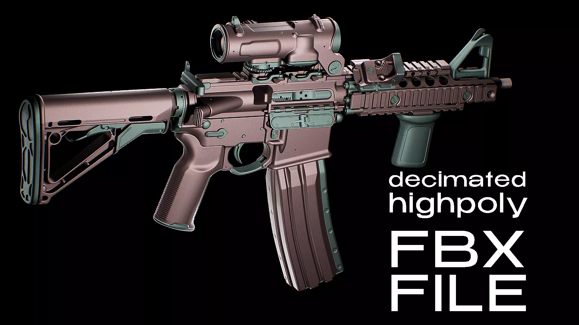 a higpholy decimated mesh of an M4 build with a variety of attachments as shown in the imagesthe files contain an extra STANAG 30 round-this is not game-ready
