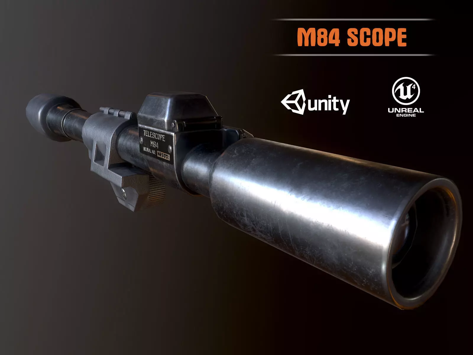M84 Rifle WW2 Scope USA PBR . Lowpoly, optimized for modern game engines. The normal map was baked from a high poly model. Geometry is triangulated to ensure best shading. Model unwrapped manually to make most efficient use of the UV space. High quality 4K resolution PBR png textures. Comes with textures optimized for Unreal Engine 4 and Unity 5.
