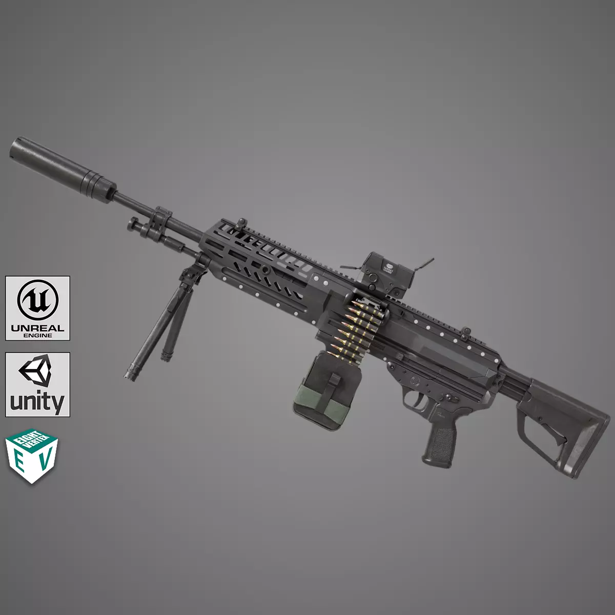 The Photorealistic 3D model of Machine Gun 14 Black Generic 3D Model. This model is suitable for any visual production - broadcast, high-res film close-ups, advertising, games, design visualization, forensic presentation, etc.