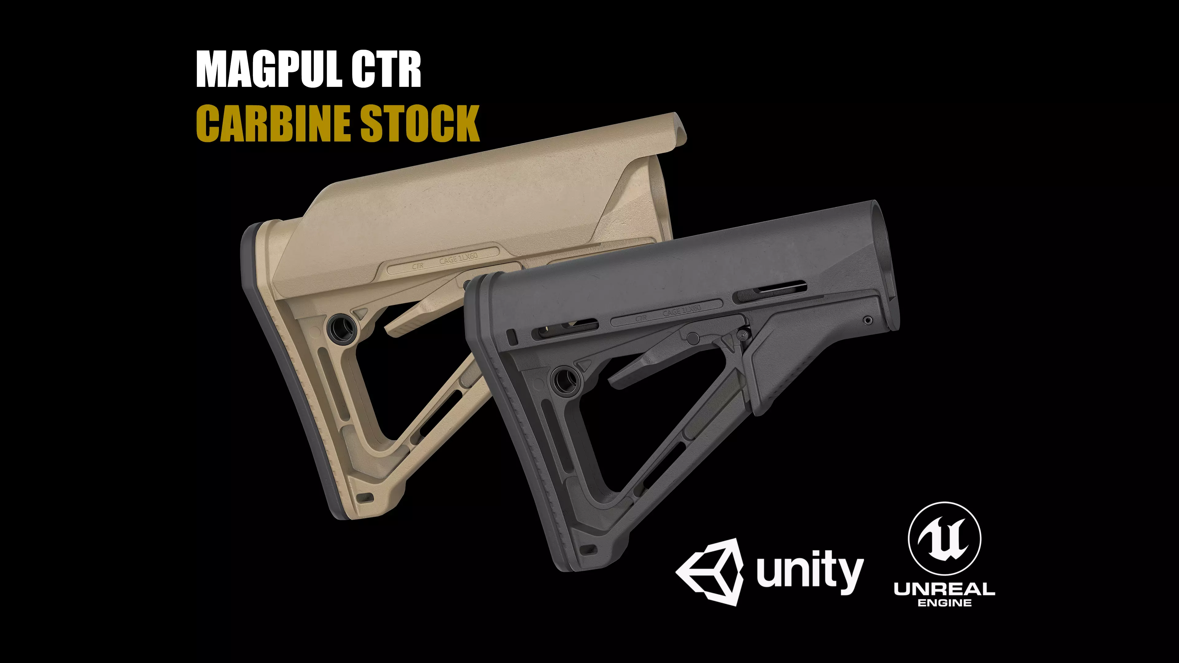 Magpul CTR Carbine Stock + AR Buffer Tube 3D Low-Poly model. (2 colors)