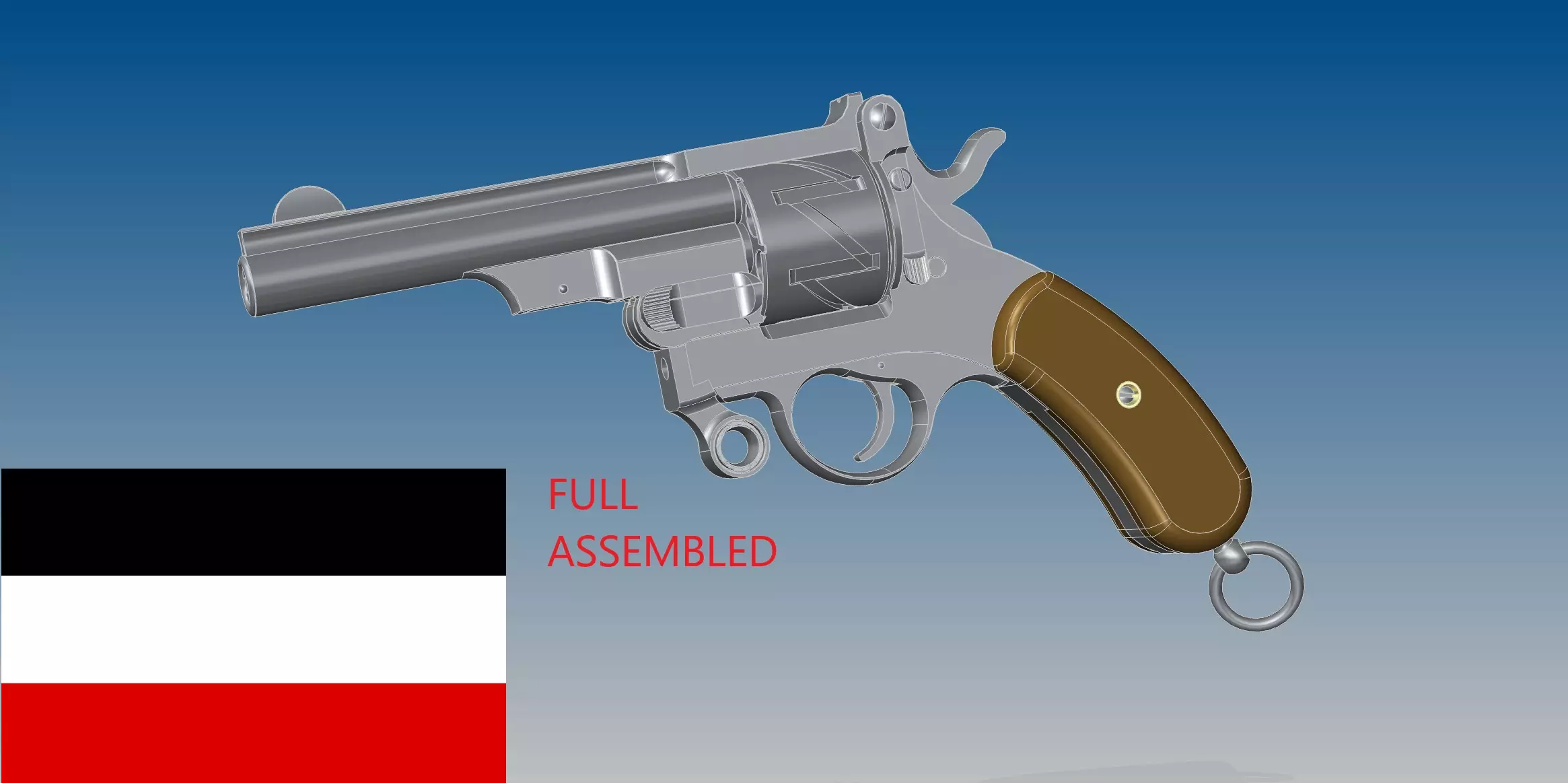 Full assembled model of Mauser C78 Zig-Zag revolver hinge version and 10,6-mm Deutsche Ordonnanz bullet
