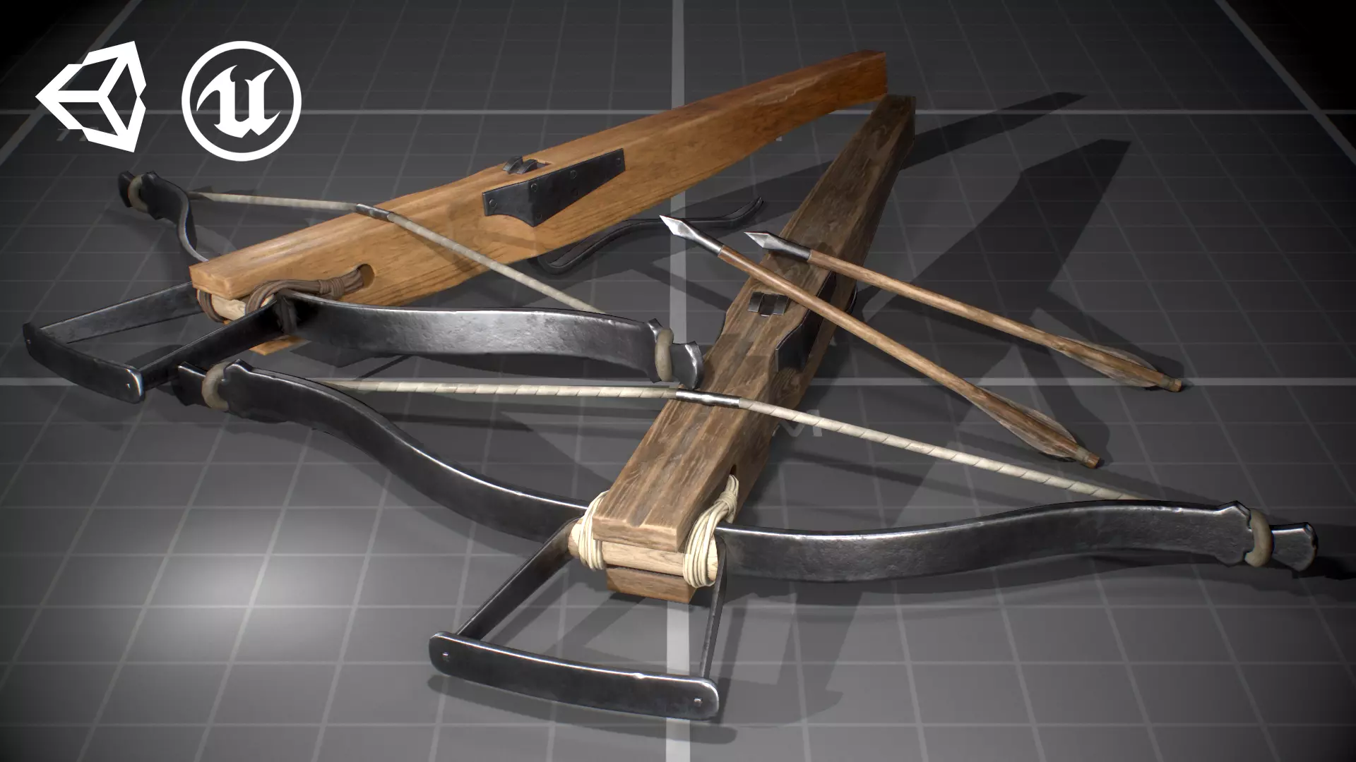• 2 color variations of crossbow with arrow, poly-count - 2853 and 146 triangles .
