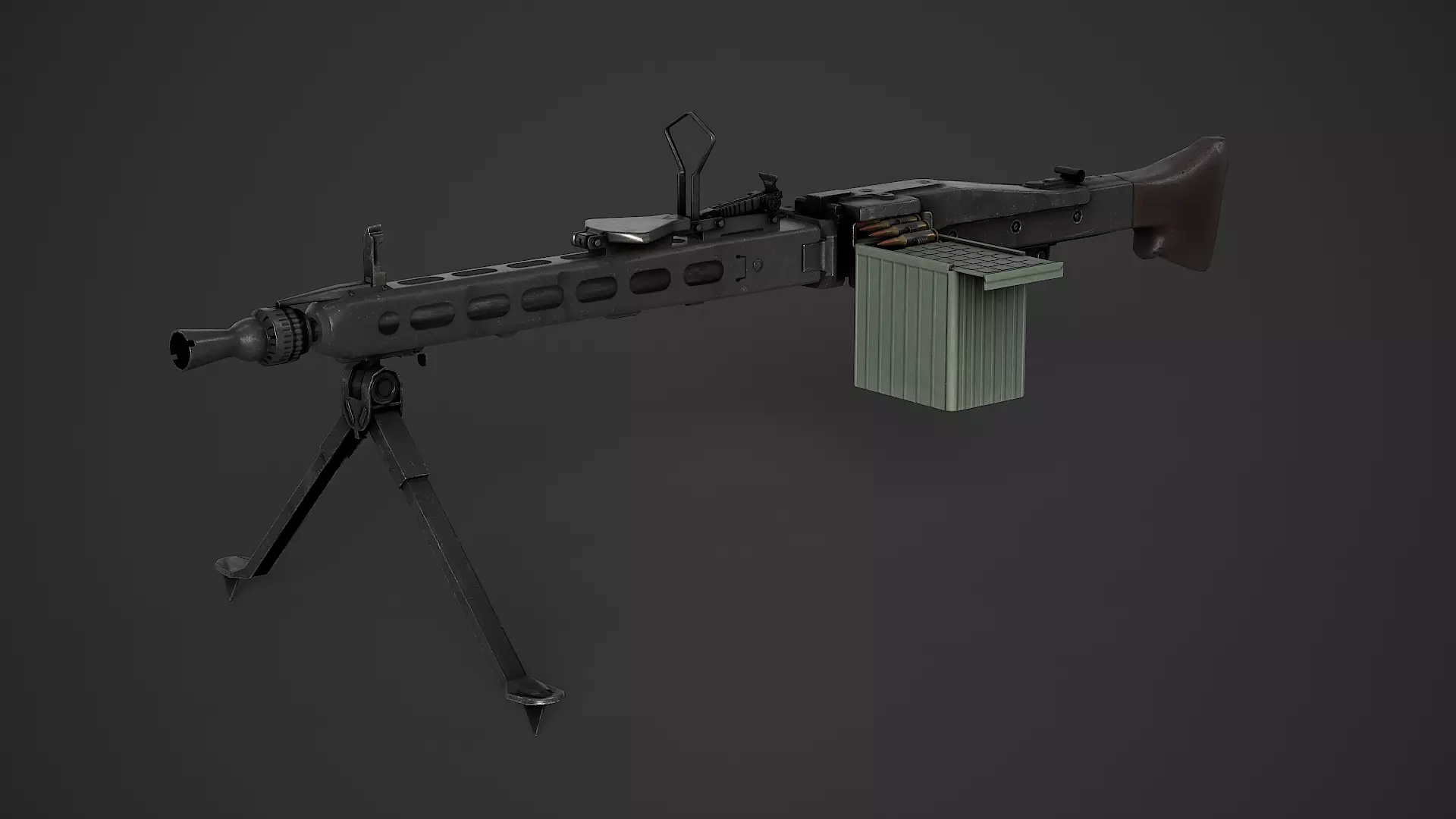 low poly model of German MG3/Beretta 42/52 7.62x51mm machine gunhere are two options for the German army or another with a black handle and a wooden one for the Italian version in the Italian localization of the Beretta MG42/52