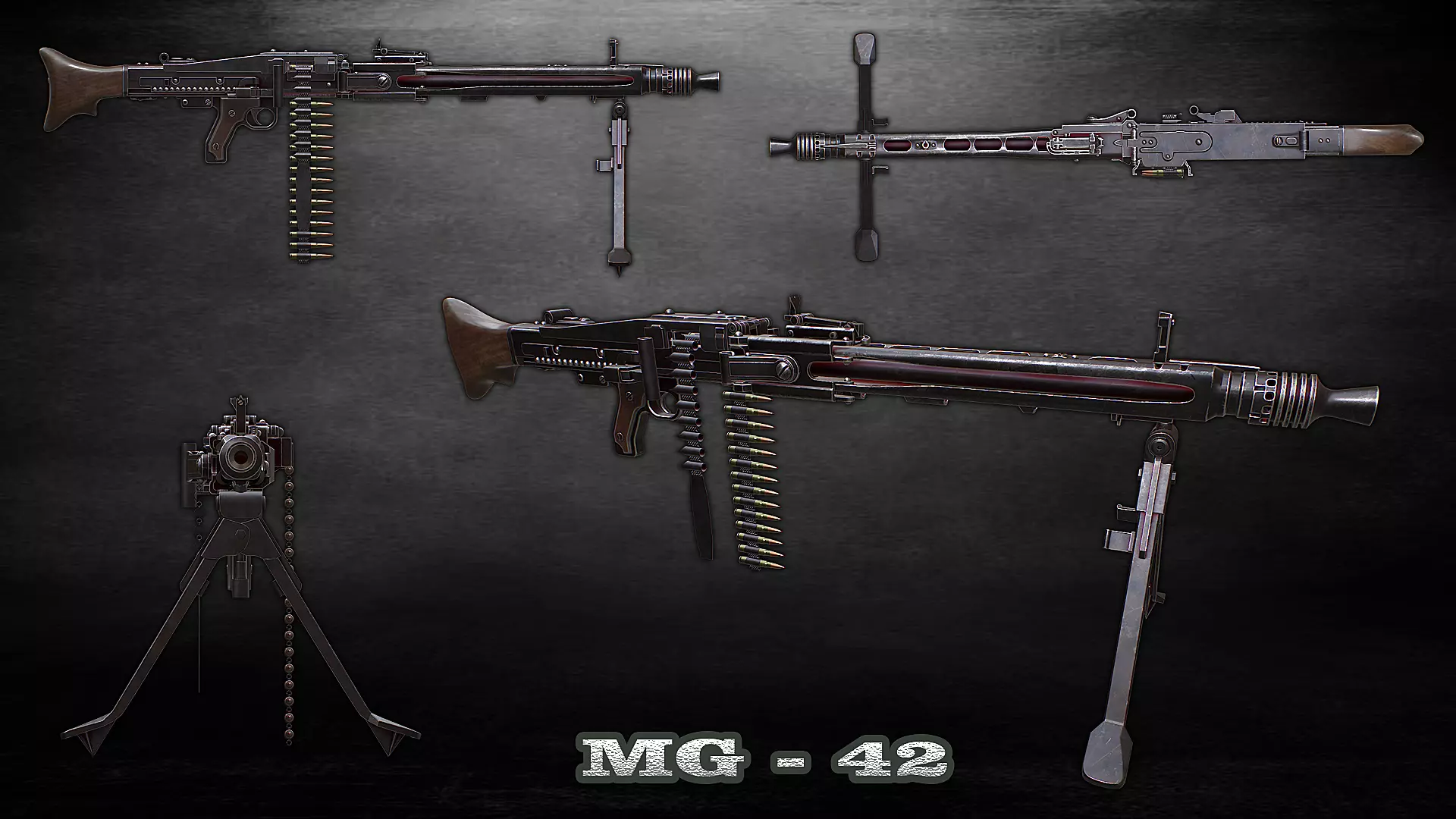 Hello. This is a high definition quality polygon of a MG-42 3d model with PBR textures. Extremely detailed and realistic. Suitable for movie prop, architectural visualizations, advertising renders, games and other. The model contains 114 objects: bipod base, bolt cap, bullet_21, case_21, case_holder_31, end plate, Left bipod, machine gun, reload handle, reload rod, Right bipod, spring_32, trigger. The archive includes Obj and FBX, textures for the Unity: Base color, Metallic, Mixed AO, Normal_OpenGL, Roughness. And also included in the archive textures for UE: BaseColor, Normal, OcclusionRoughnessMetallic. Scene contains 13 materials. If you need, we will make a file of this model for 3D printing especially for you. Original file size: 2.84 GB. Archive file size: 709 MB.