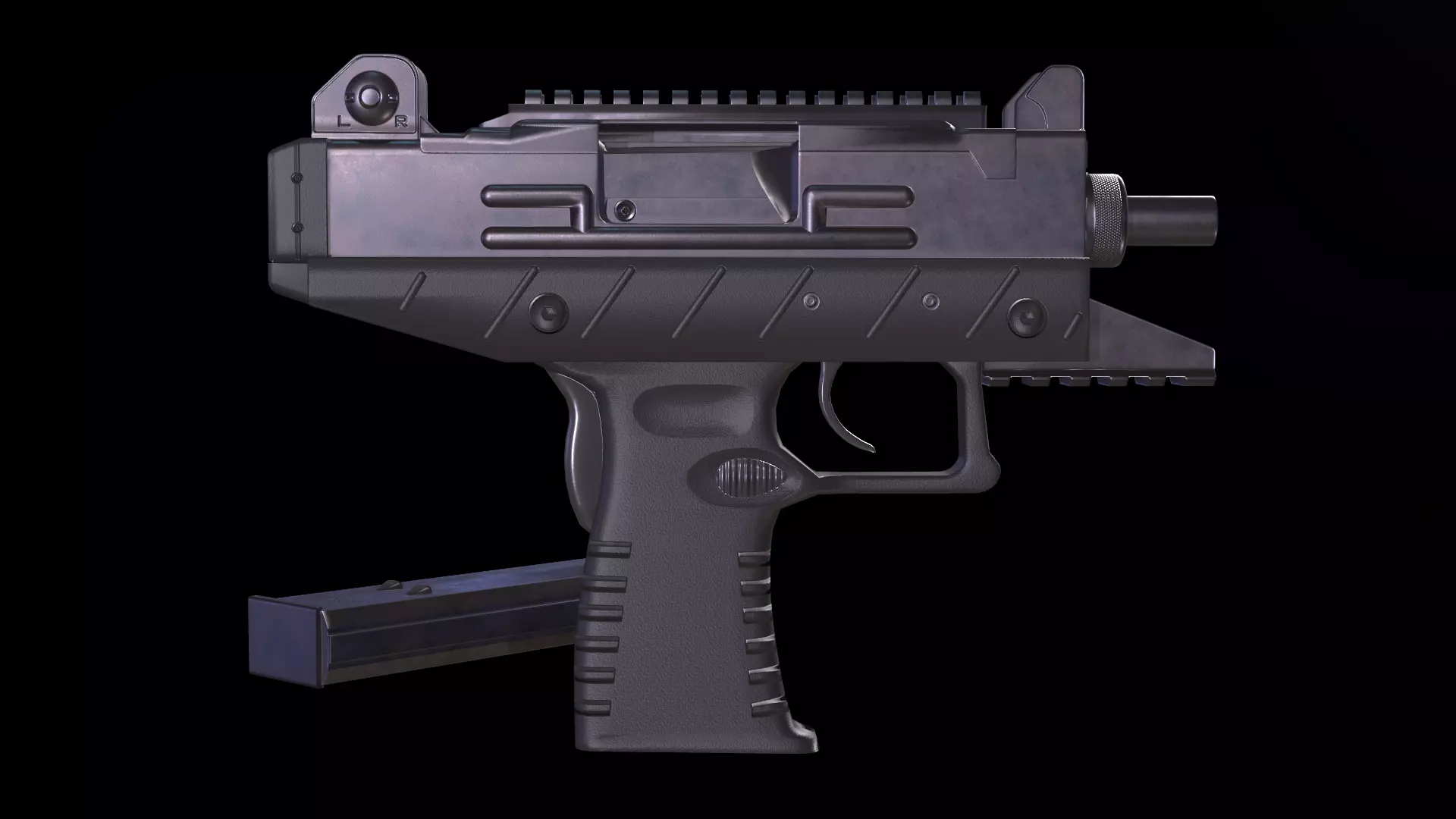Low-Poly Micro Uzi Submachine Gun Animated Model for games, animated films, etc.
