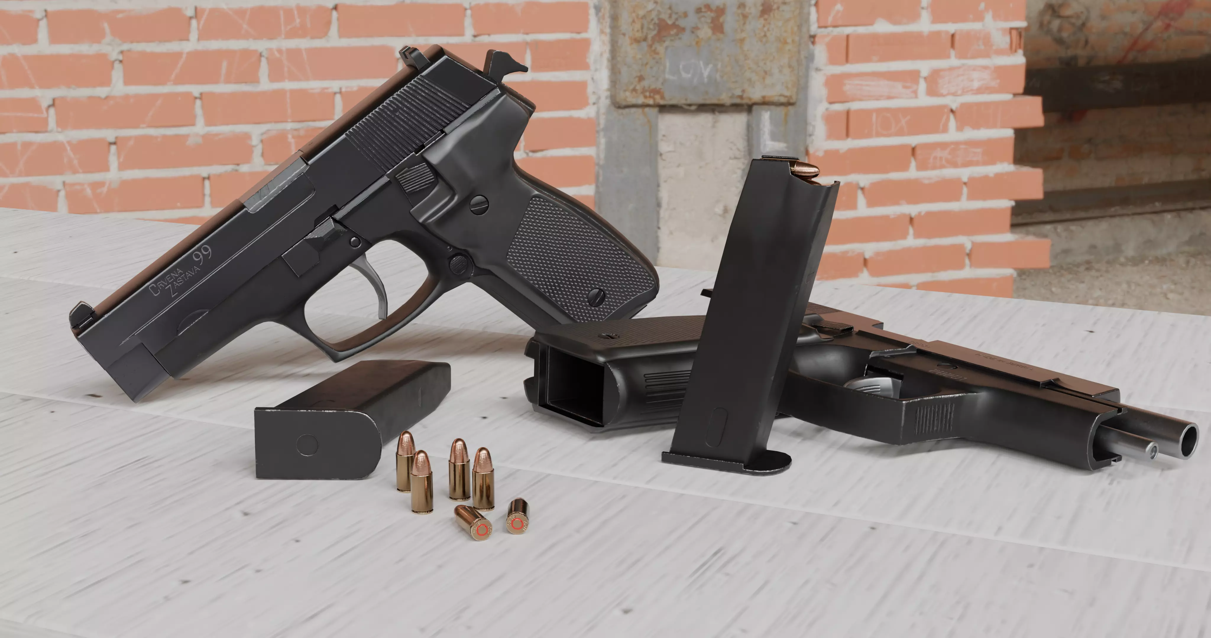 The model is rigged for animaton and comes with both png and tga texture formats in both 2k and 4k resolution.The CZ-99 pistol take the likeness of the SIG P226 and features a 15 round magazine in 9x19 mm. The model is rigged with vertex groups aswell for easy animation for any game or project.
