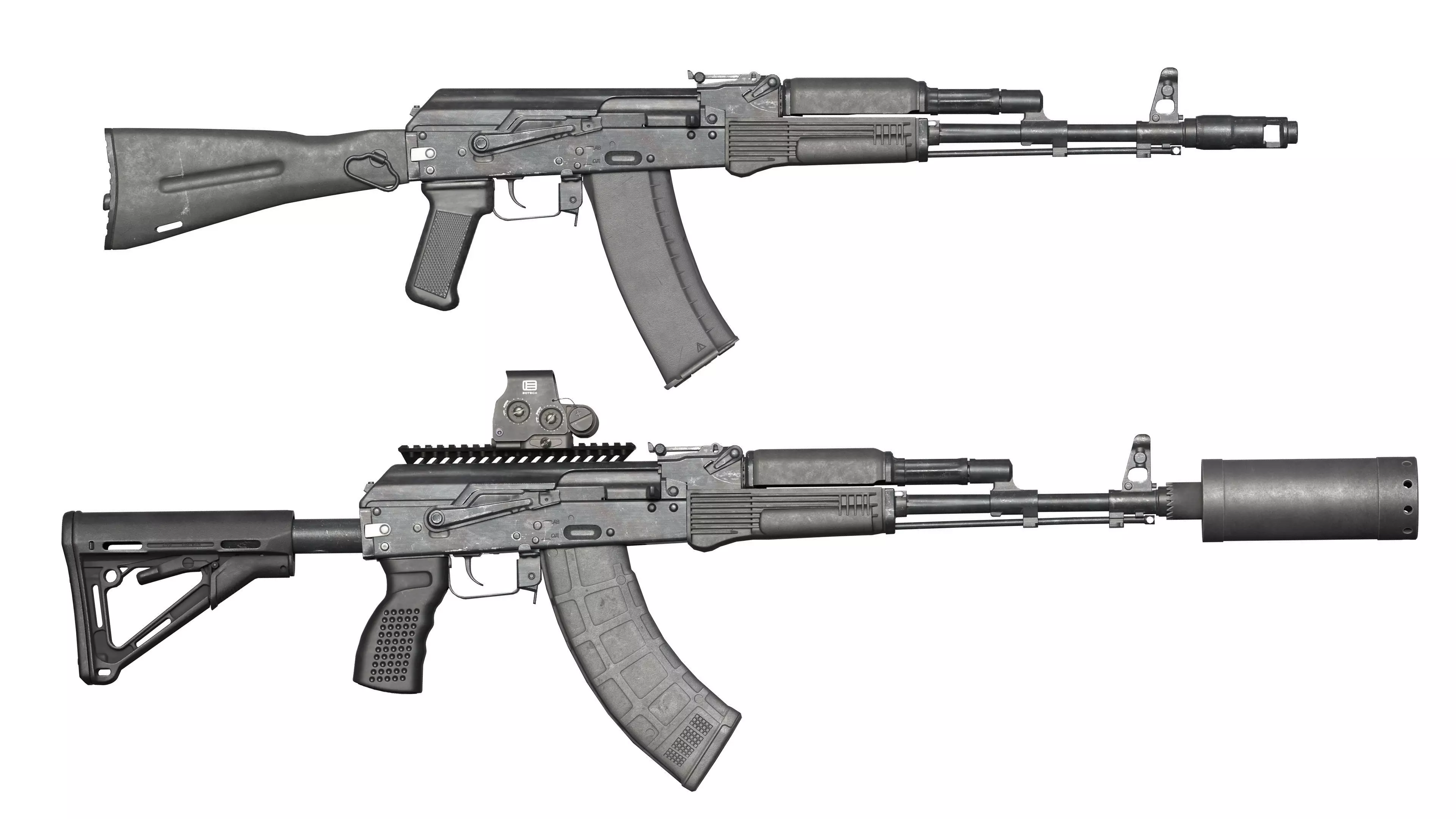 We added one 4k texture map for the AK, all the separated pieces have their own 2k texture sets. You can resize it to lower resolutions if needed. This model is well optimised for first and third person shooters. (Around 50k tris depending on the attachments you put on it).
