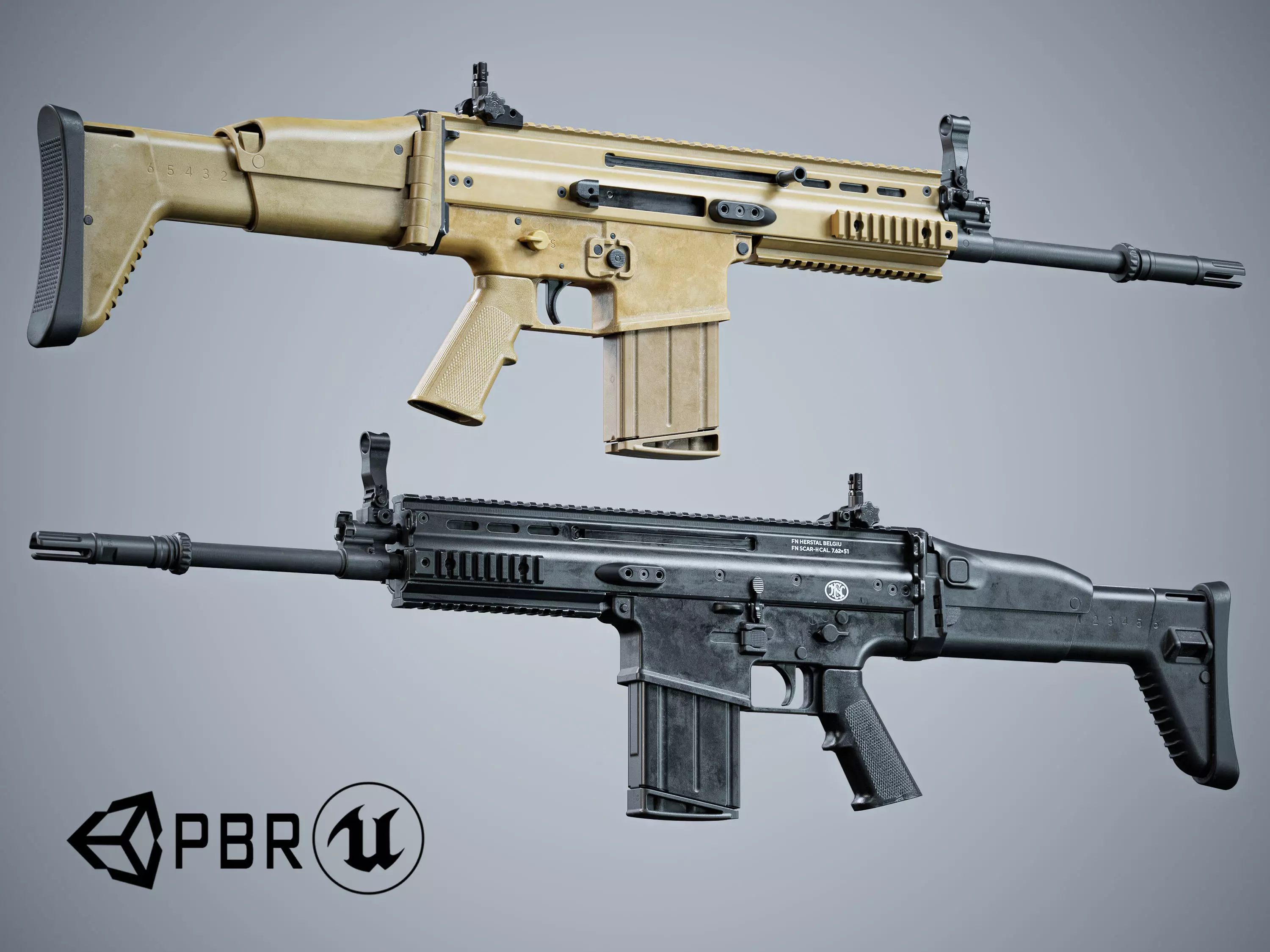 Game-Ready high-quality 3d model MK 17 FN SCAR-H assault rifle 7.62 × 51 caliber for Unreal Engine, Unity and other PBR game engines, renderers, first Person Shooters, VR games, and your other projects.