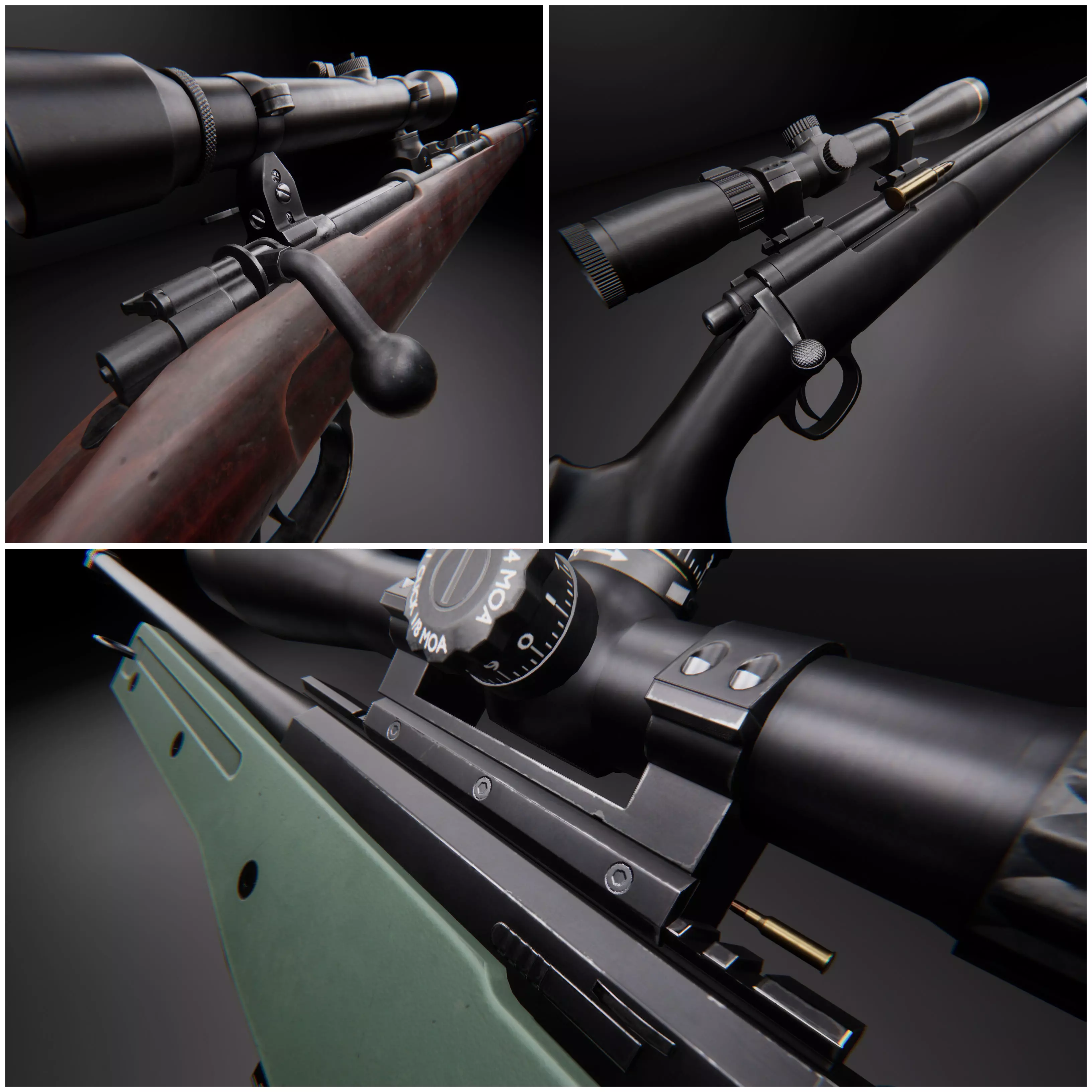Modern AAA Bolt Action Rifle Pack Game Ready PBR Low-poly 3D model
