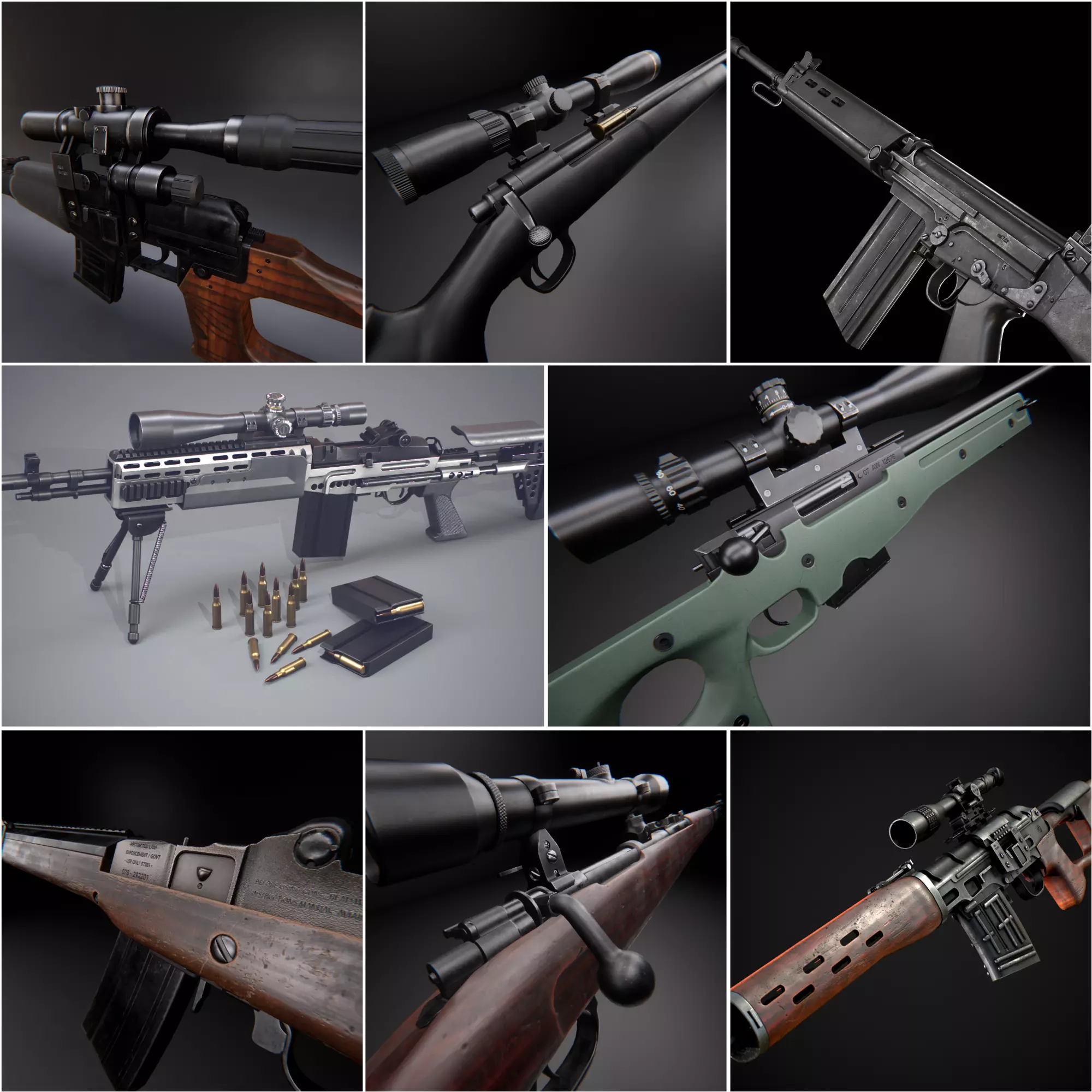Modern AAA Game Ready PBR Long-range Rifles Pack Low-poly 3D model
