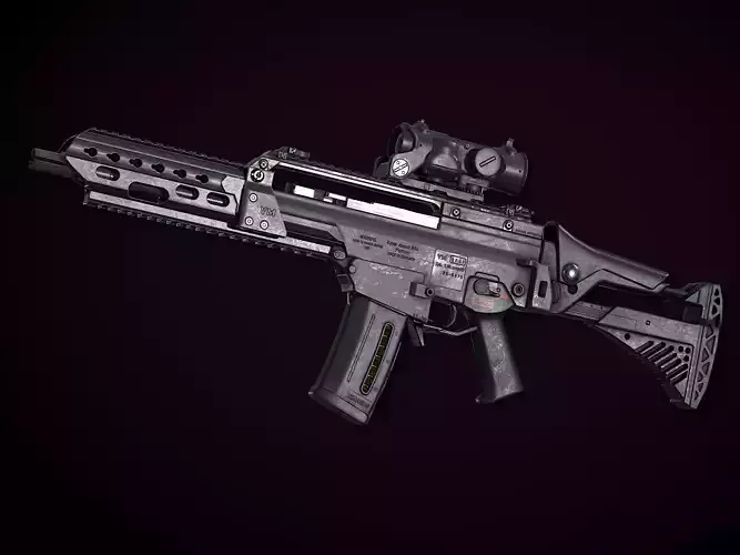-G36 Body - 8373 Tris (4k)-Classic Long Handguard - 6552 Tris (Shared Textures)-Hkey Handguard - 718 Tris (2k)-Classic 3xOptic top section - 2106 Tris (2k)-Classic Red dot (mounts on top of 3x optic) - 1952 Tris (Shared Textures)-Alternative Picattiny top rail - 714 Tris (Shared Textures)-Optional iron sights for top rail - 1818 Tris (1k)-Elcan Spectre Scope - 4991 Tris (2k)-M320 Grenade Launcher - 11014 Tris (2k)-40MM Grenade - 1244 Tris (512x512)-Polymer 556 Mag (seethrough slit) - 1598 Tris (1k)-5.56x45mm NATO Bullet 184 Tris (x30) (512x512)