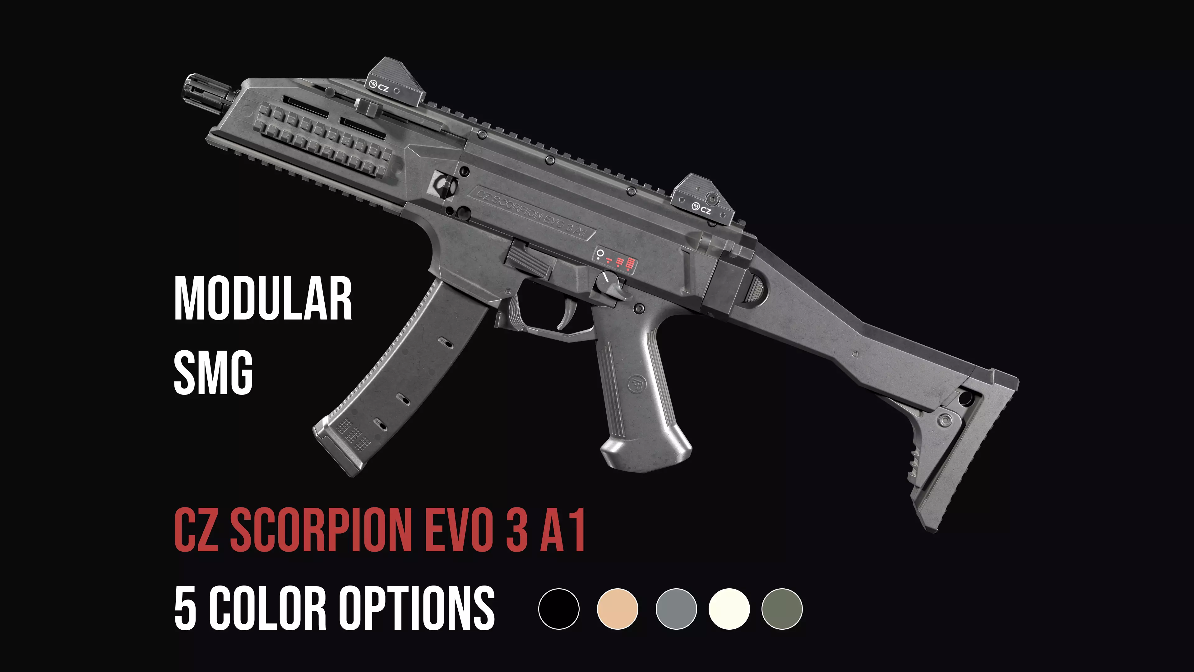 High quality low-poly model scorpion evo 3 , created as close as possible to the original with exact dimensions, with highly detailed PBR textures(including textures for Unity and UE5 game engines). I create my models as realistic as possible. You won't see the magazine shaft , barrel, chamber or bolt , covered by the texture or geometry. If you even need to see the rifling in the barrel or any other small details of the weapon. Then this model is exactly for your project. Maximum manifold geometry in model. Open (non-manifold) geometry is only present in rare cases,but you will never see it even with any weapon animation and other manipulations.Game ready model for PBR game engines, renderers, first Person Shooters, VR games, and your other projects.