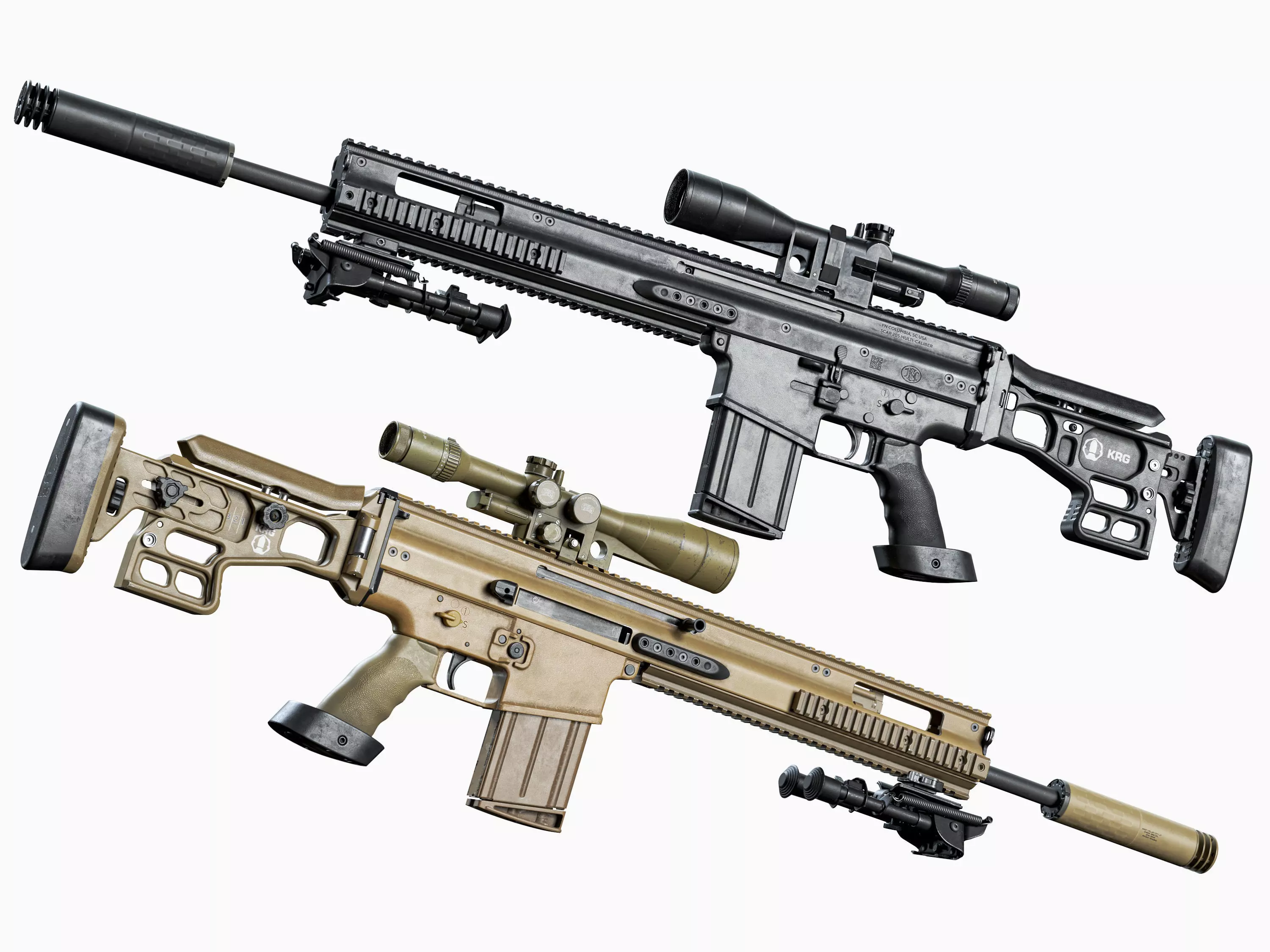 Game-Ready high-quality 3d model MK 17 FN SCAR-H tactical sniper rifle 7.62 × 51 caliber for Unreal Engine, Unity and other PBR game engines, renderers, first Person Shooters, VR games, and your other projects.The set contains two texture variations: classic black and FDE. FDE variations are a separate color texture. Scope, bipods, magazine, pistol grip, silencer also have an additional color besides black and fde.