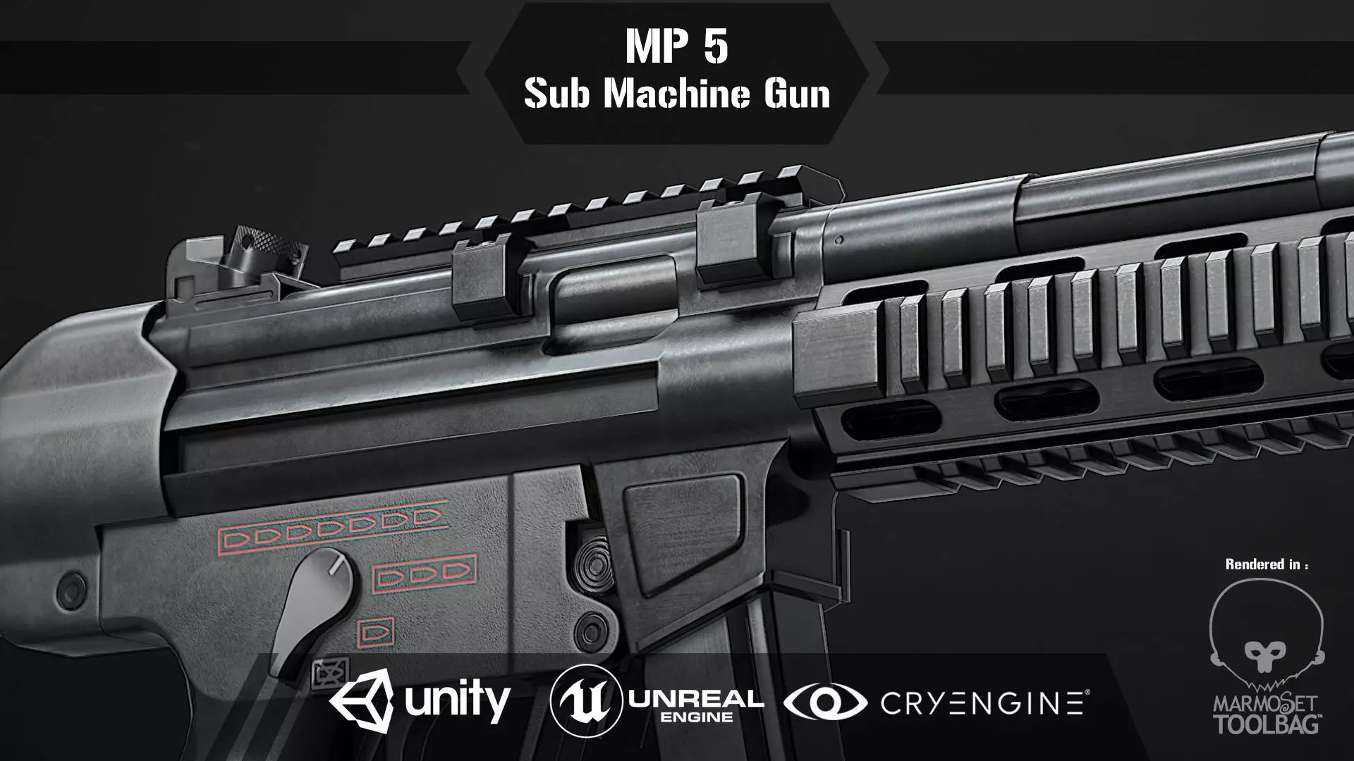 MP 5 Sub Machine Gun Low-poly 3D model