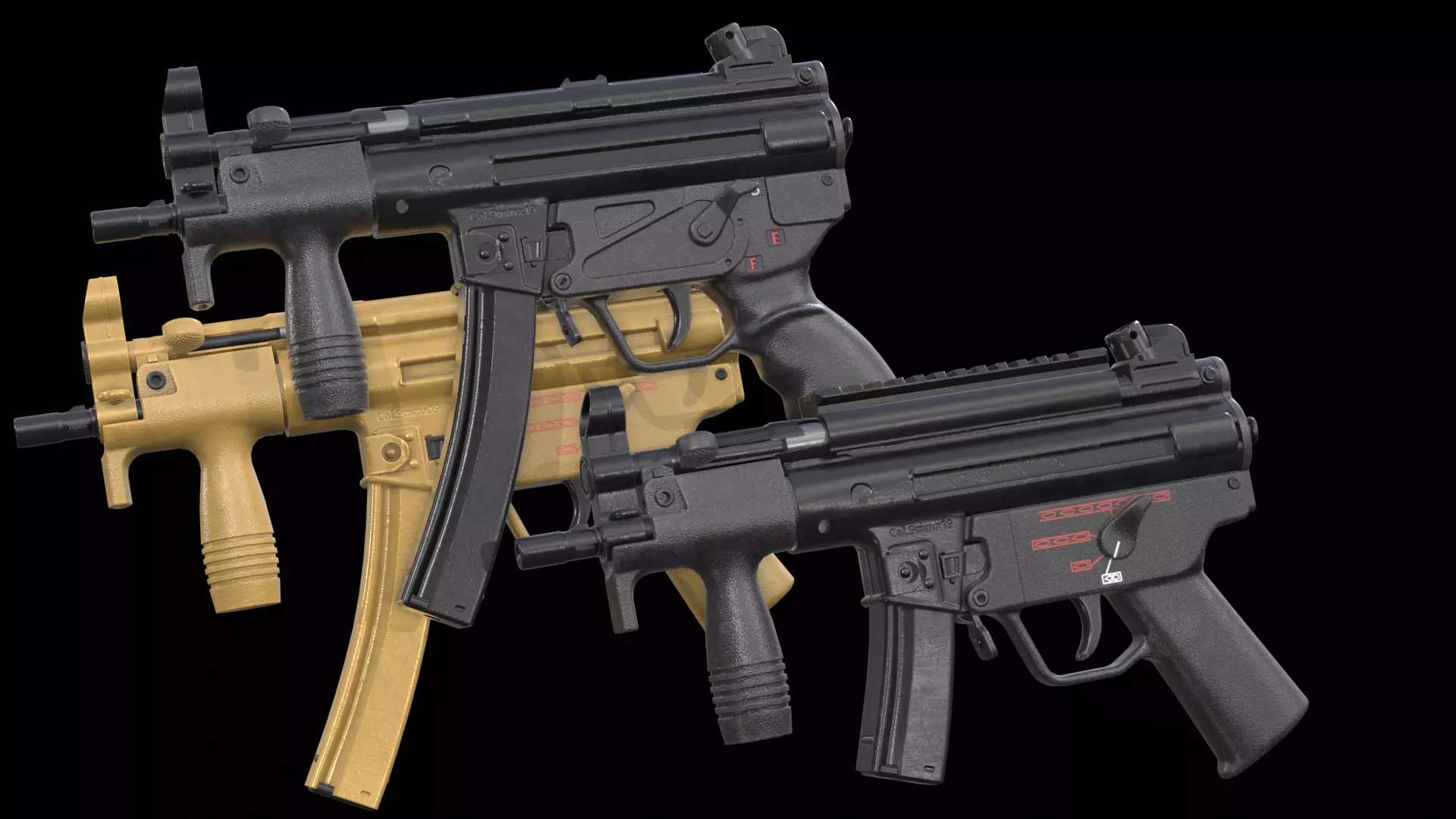 Game ready low (mid)-poly 3D models of MP5K and MP5KN + Scope Mount (FBX, Maya, Blender, 3ds Max). (Check out my other MP5 family models!)