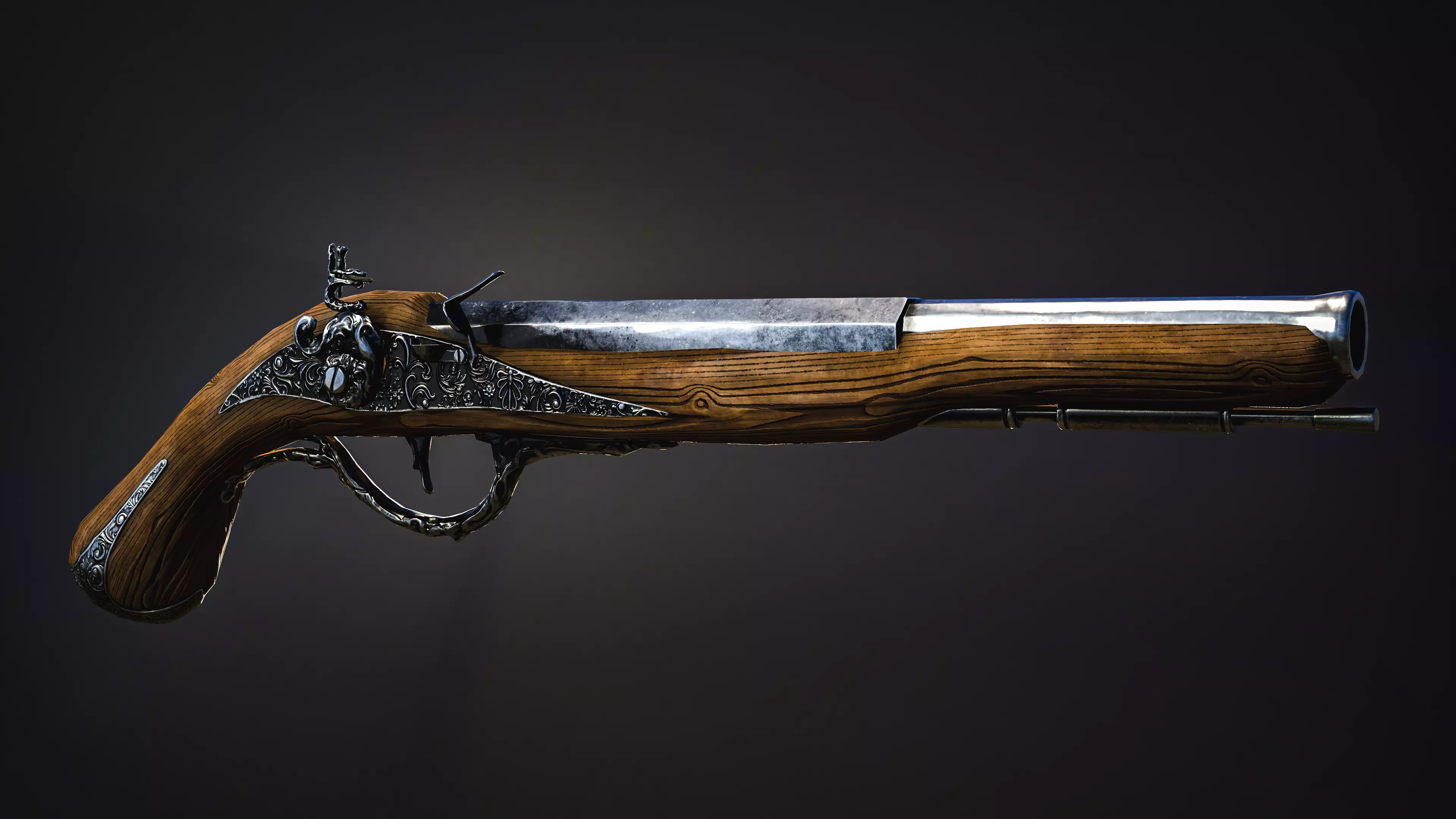 Musket Game-ready low-poly wooden gun Low-poly 3D model