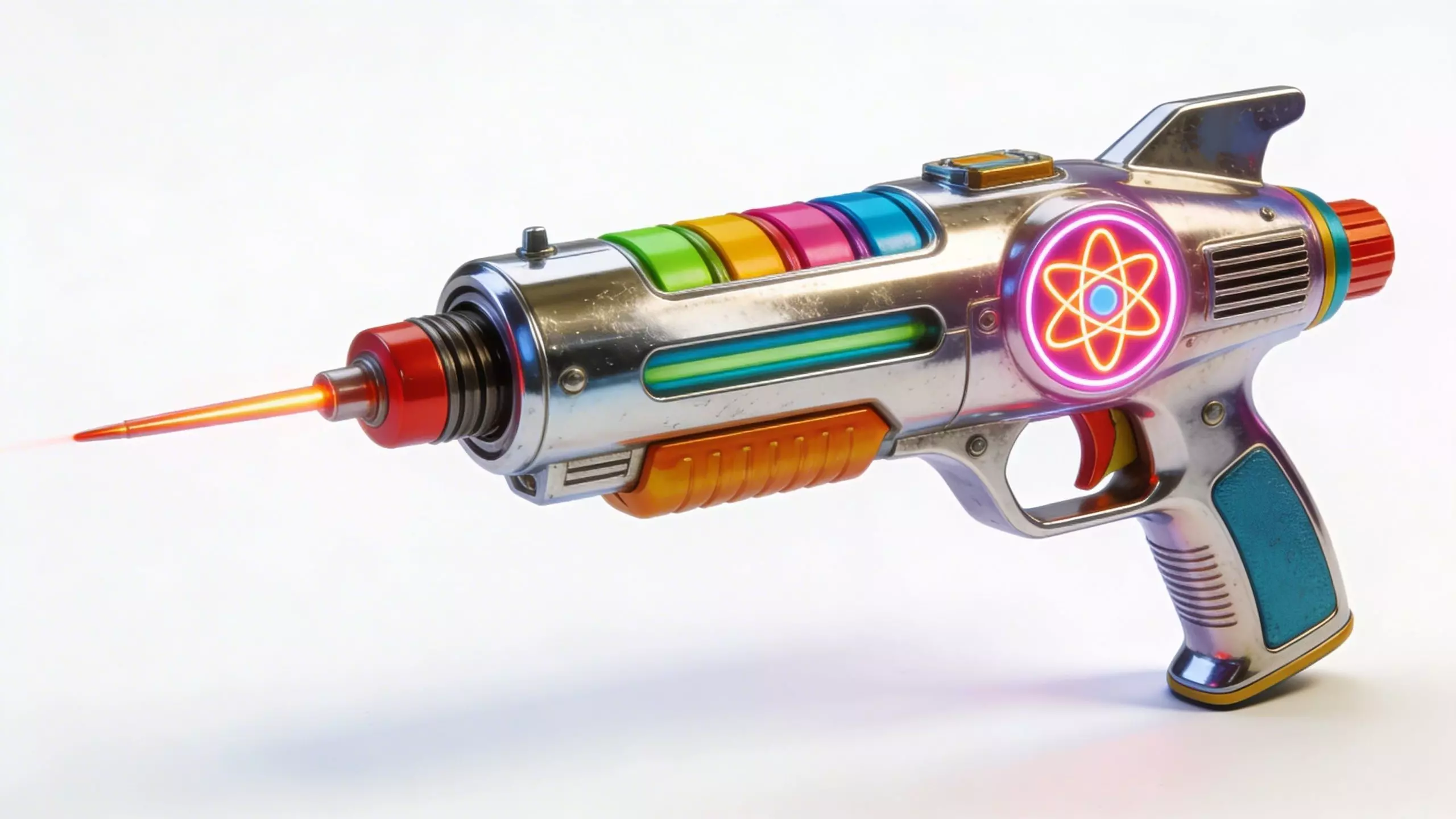 DescriptionThis high-fidelity 3D model features a vibrant Atompunk ray gun with a sleek, polished chrome body, inspired by 1950s Atomic Age aesthetics and neon-noir science fiction.