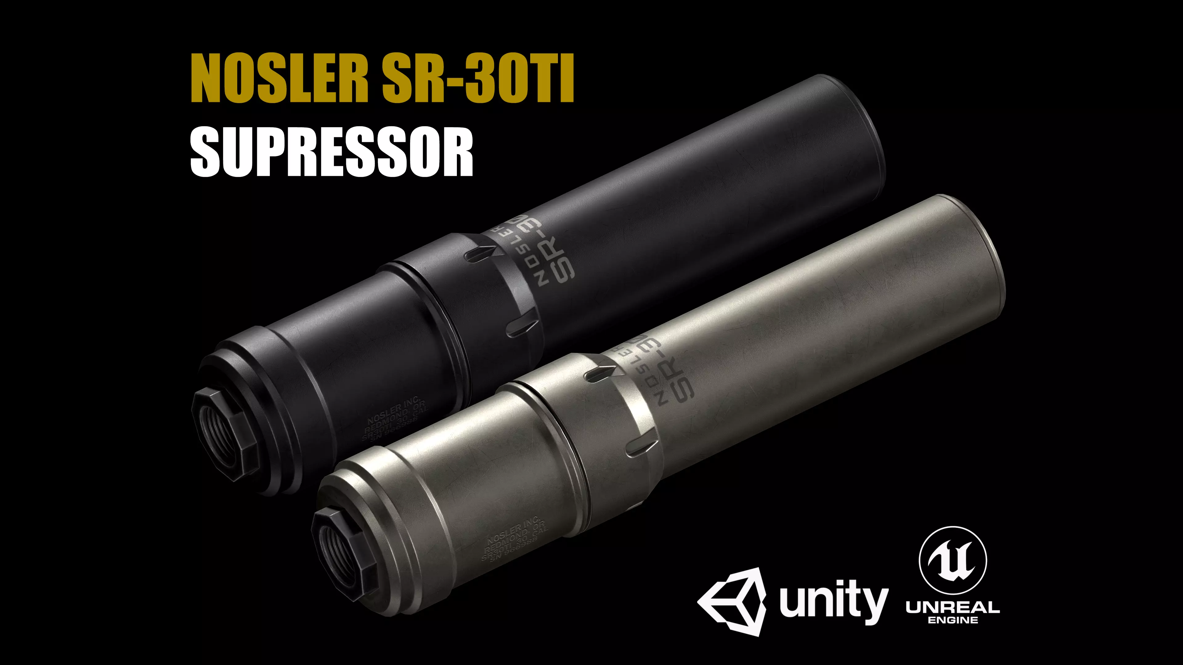 Nosler SR-30TI Supressor for .30 caliber and smaller 3D Low-Poly model. (2 colors)