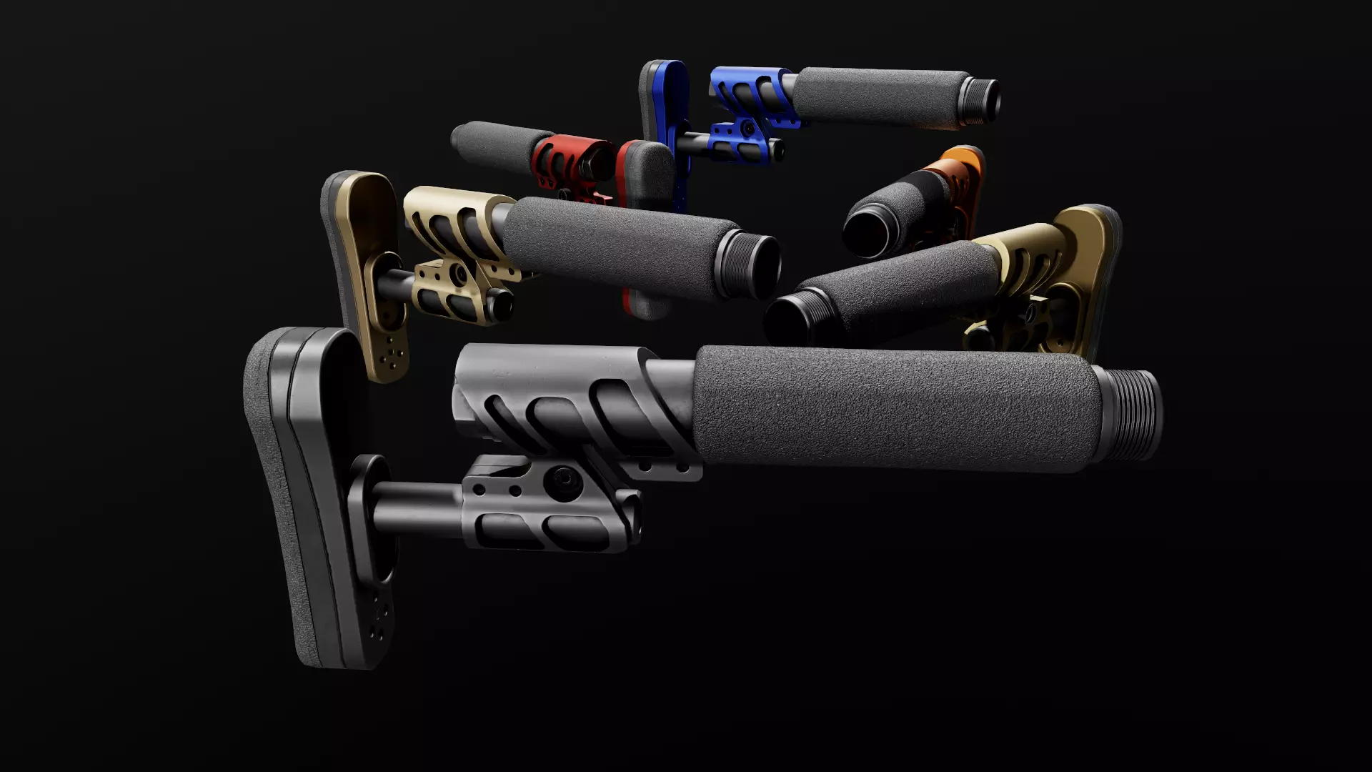 Game ready model of an Odin Works Zulu 2.0 Adjustable AR15/M4 Buttstock.