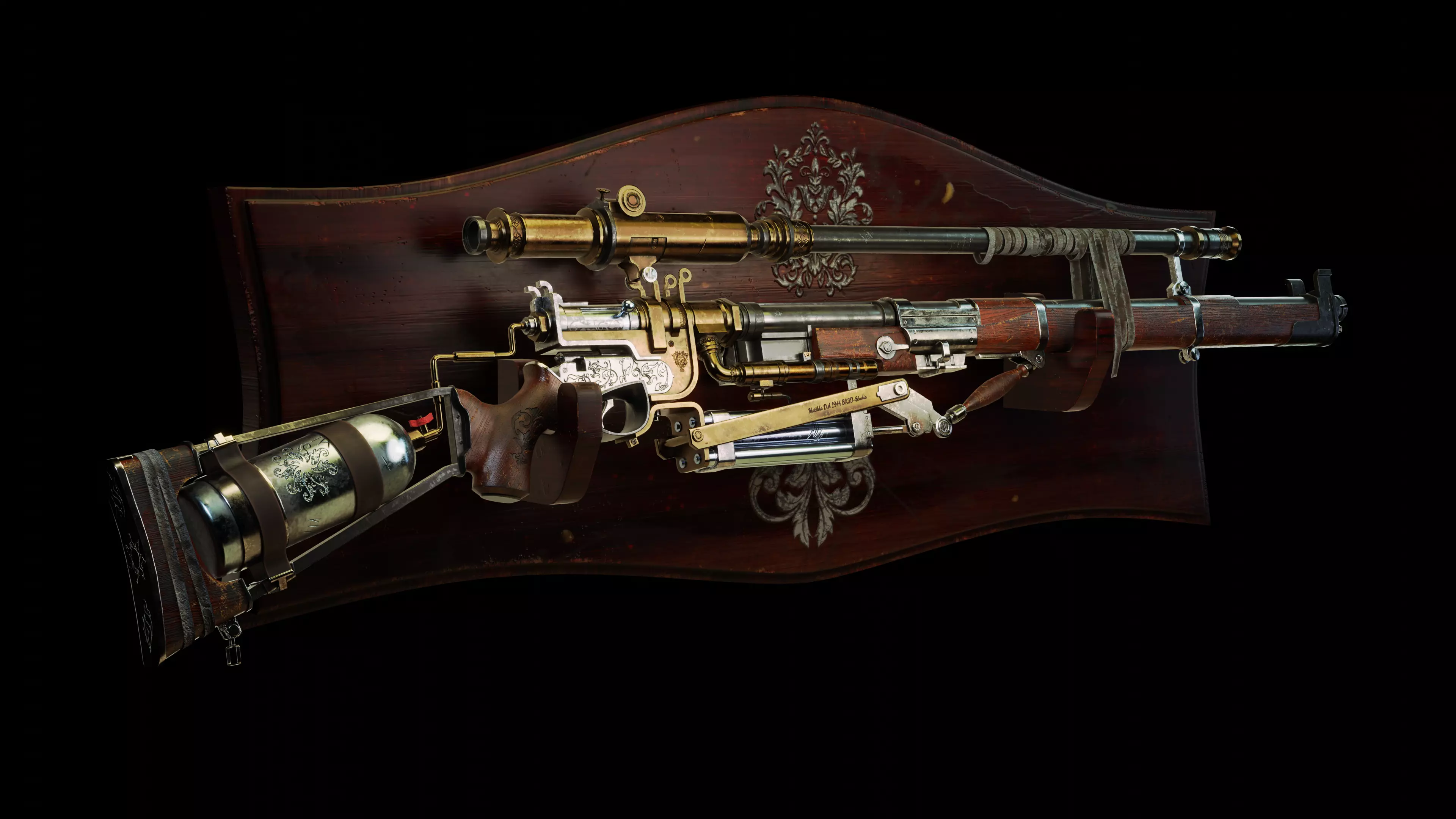 Old steampunk weapon, high quality 3D model (ready for AR/VR games and visualization)