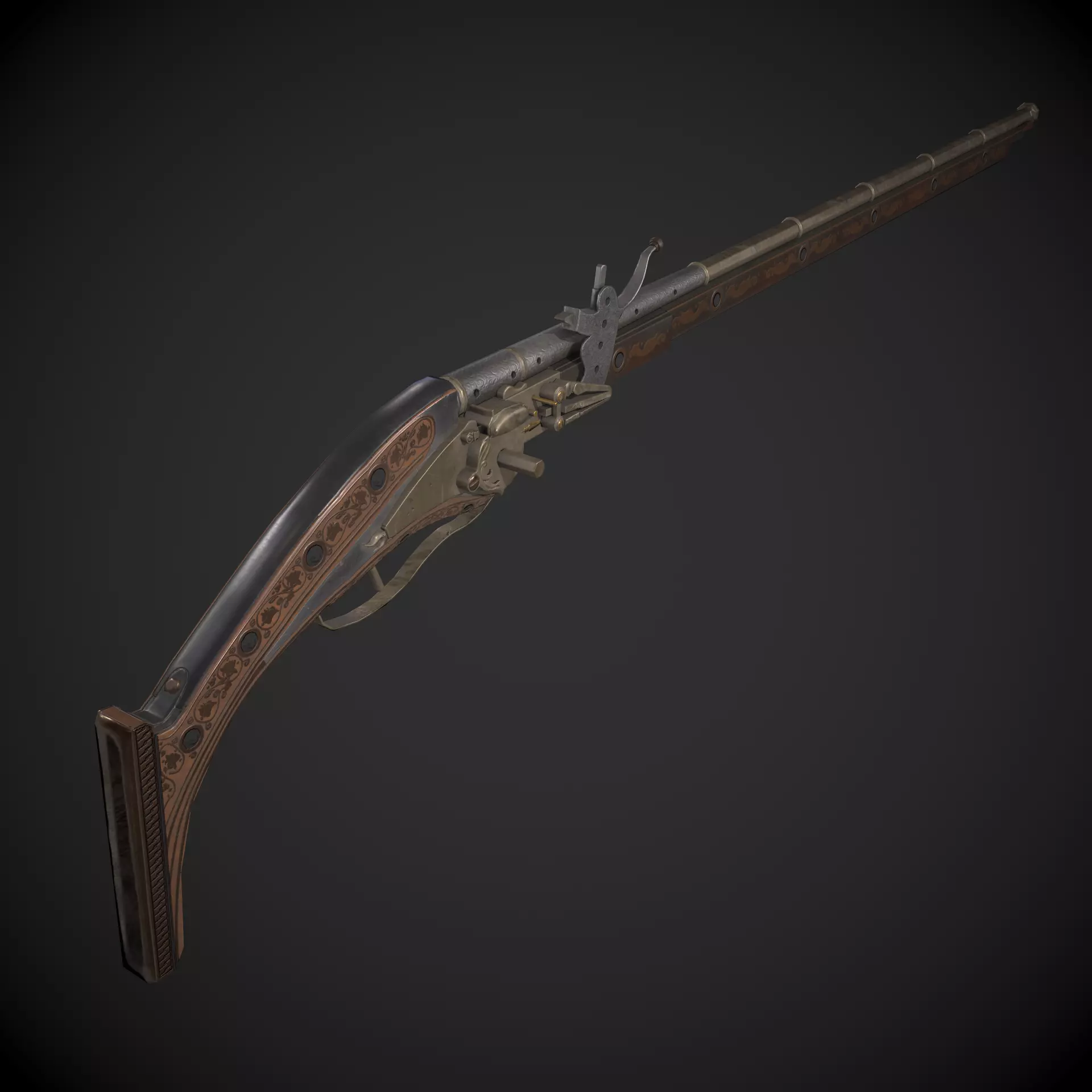 Game-ready Ornate Musket asset, with PBR textures included in the files. This has 2075 polys (3798 tris) and 2340 vertices.
