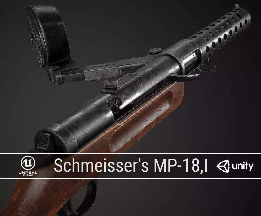 PBR German Schmeissers MP 18 I Low-poly 3D model