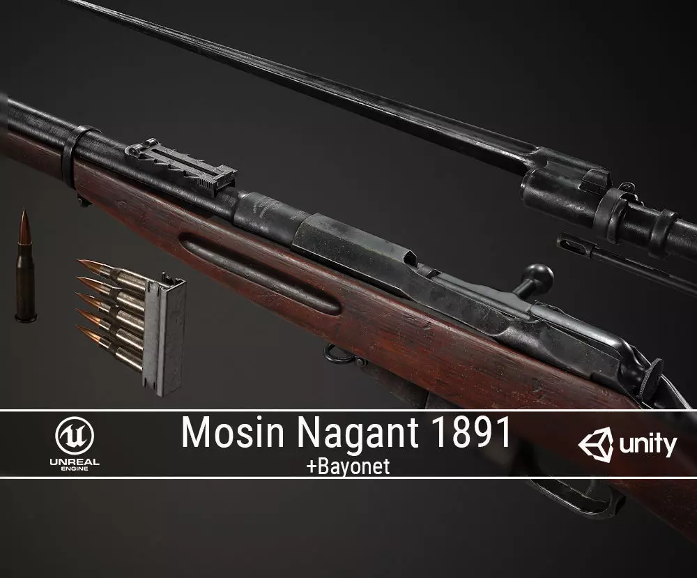 PBR Soviet Mosin Nagant 1891 Low-poly 3D model