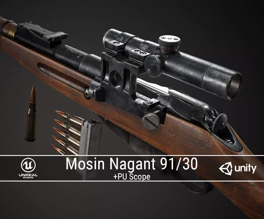 PBR Soviet Mosin Nagant 91-30 Sniper Rifle Low-poly 3D model