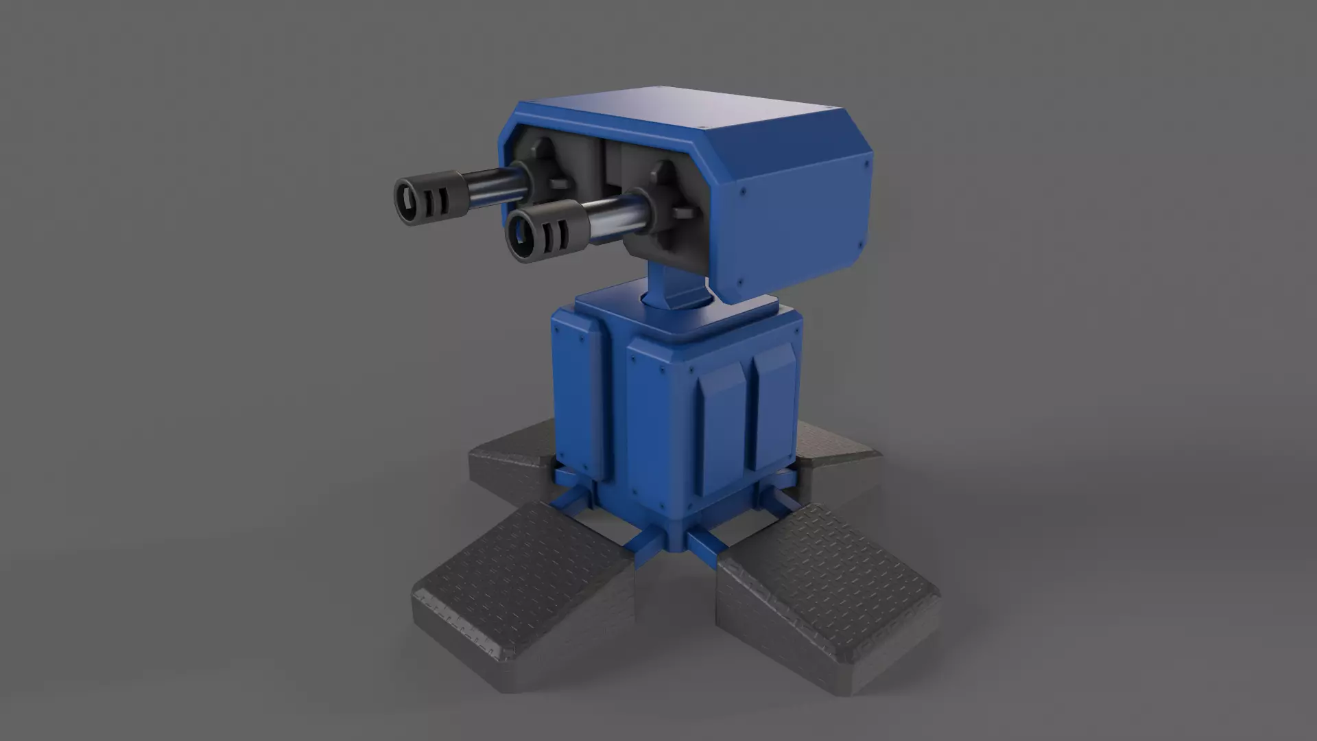 PBR Turret Gun 05 Blue Low-poly 3D model