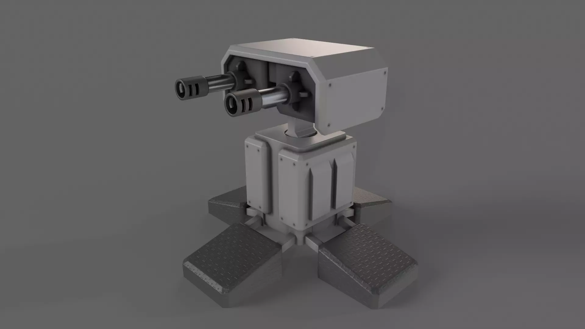 PBR Turret Gun 05 Grey Low-poly 3D model