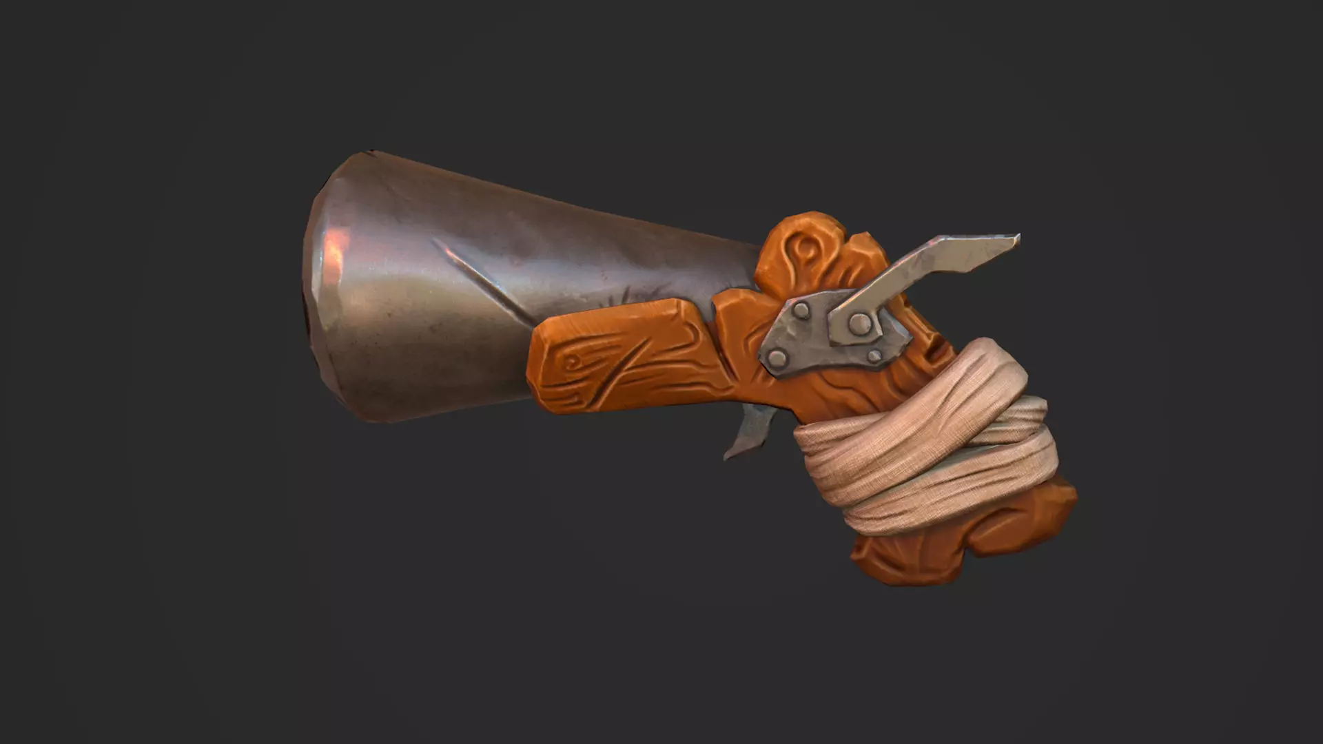 A stylized Pirate's blunderbuss, fully rigged and animatedYou got 2 model : 1 for the blunderbuss , 1 for the bullet.