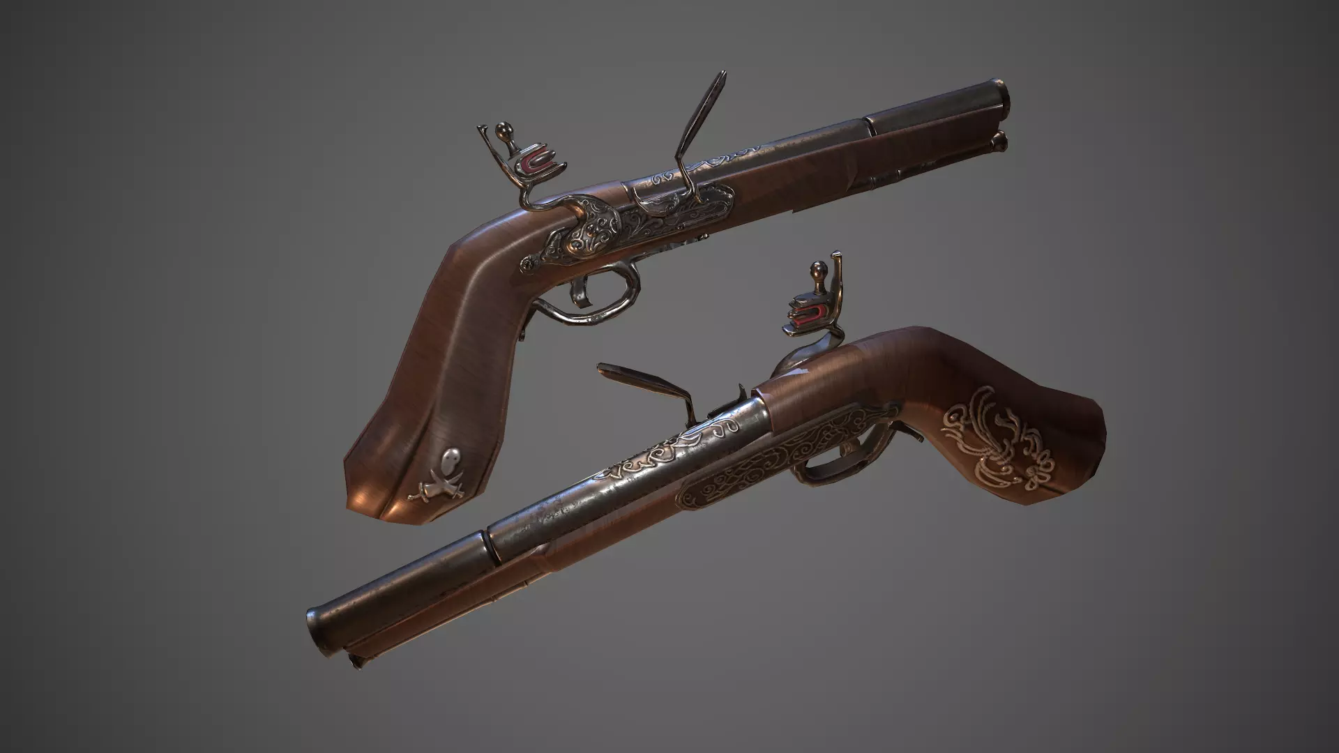 This is a low poly, game ready 3d model of a pirate's flintlock pistol. Textures are included and ready to be rendered in both maya and marmoset toolbag. The model can be rigged and animated.