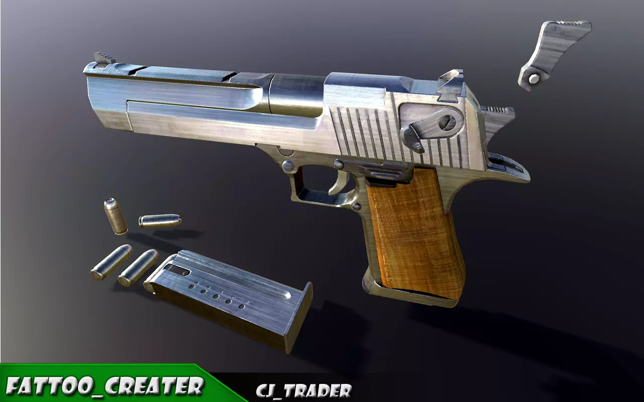 3DModels - Lowpoly desert eagle pistol model, Ammo,Bullets,Shell,Megazine.Textures - High qulity diffuse, ambient, spectular, normal map,FBR Available In - Fbx,Obj,3ds,Abc,Dae