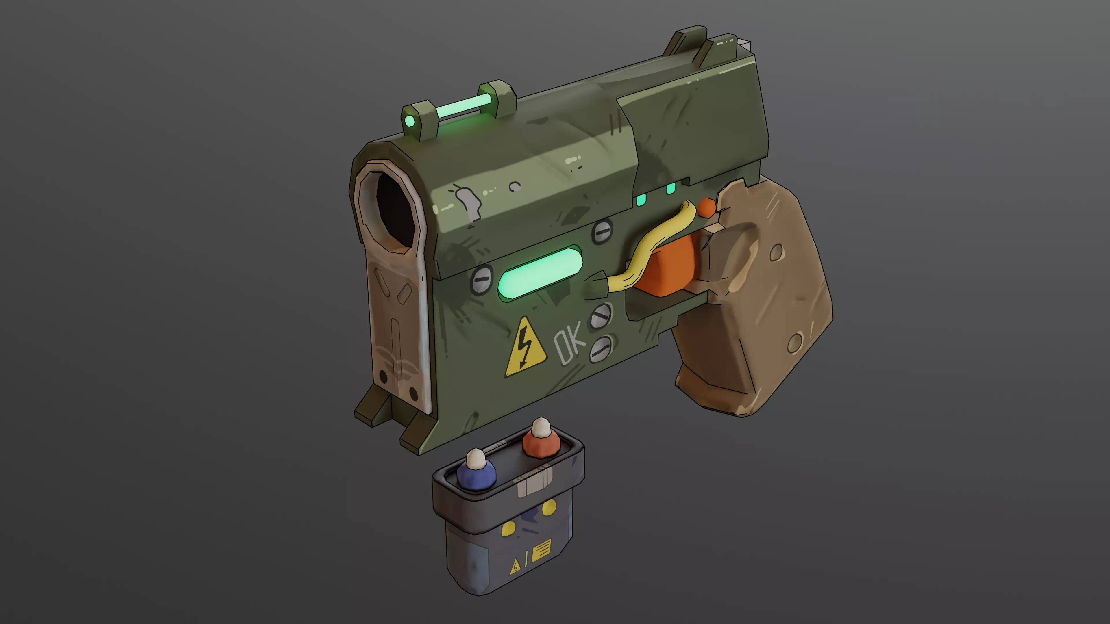 Plasma gun in cartoon style Low poly model 2235 Triangles in a set of 2 variants of normal maps under DirectX, OpenGL The style is a bit like the old school of Japanese anime