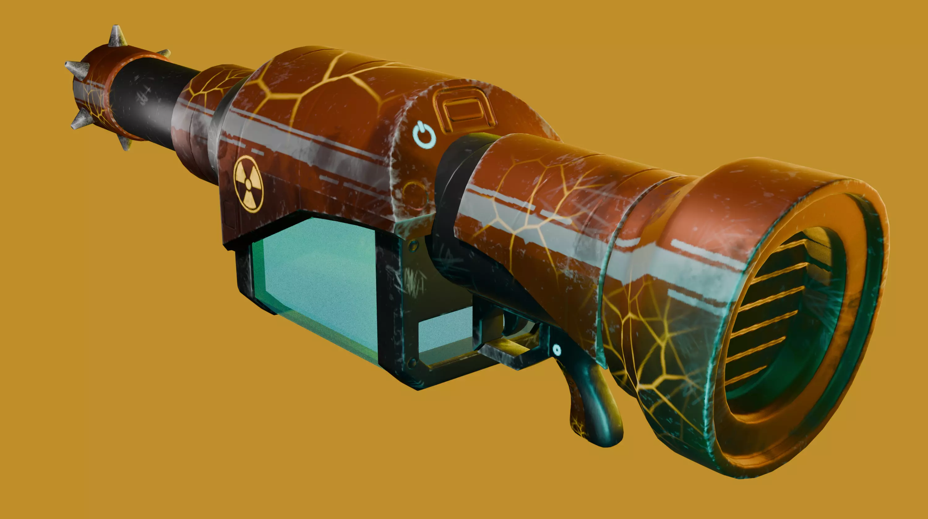 Features: High-quality modeling: Optimized for subdivision and fine details. 4K PBR (Physically Based Rendering) textures, with maps for: Base Color (Albedo) Roughness Metallic Normal Map (OpenGL/DirectX) Emissive (for lit areas of the weapon) Visual style: Post-apocalyptic with details of corrosion, cracks, and worn-out paint.Luminous elements: Emissive areas in cyan color, simulating plasma energy. Unique details: Metallic spikes at the front resembling an offensive drill Radioactive logo on the central body Translucent energy capsule with green/blue tones Cracked surfaces and aged metal Included formats: .blend (native to Blender with configured shaders) .fbx and .obj (for compatibility with other engines) Individual textures in an organized folder Compatibility: Ideal for engines such as Unity, Unreal Engine, and software like Maya, 3ds Max, Cinema 4D, Substance Painter, etc.
