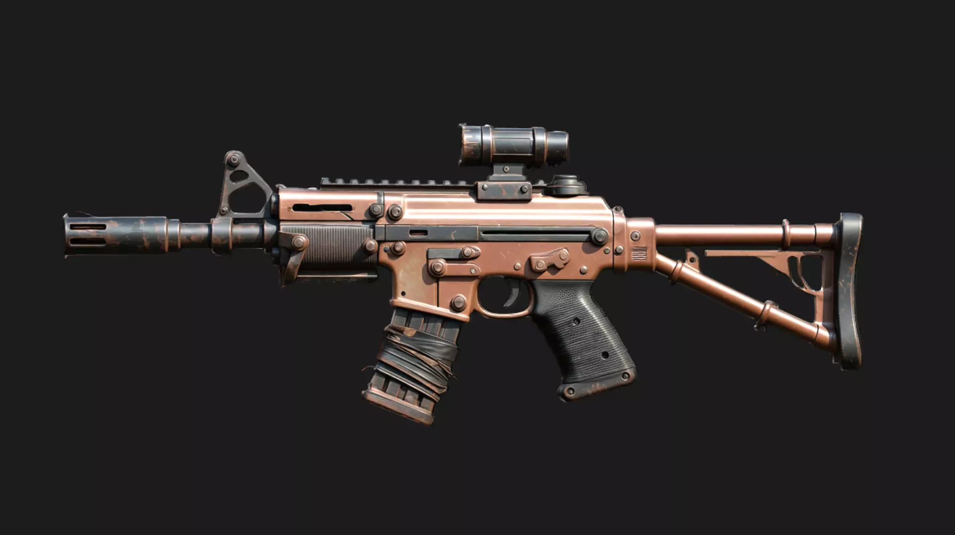 A detailed post-apocalyptic assault rifle designed for survival, dystopian, and tactical game environments.