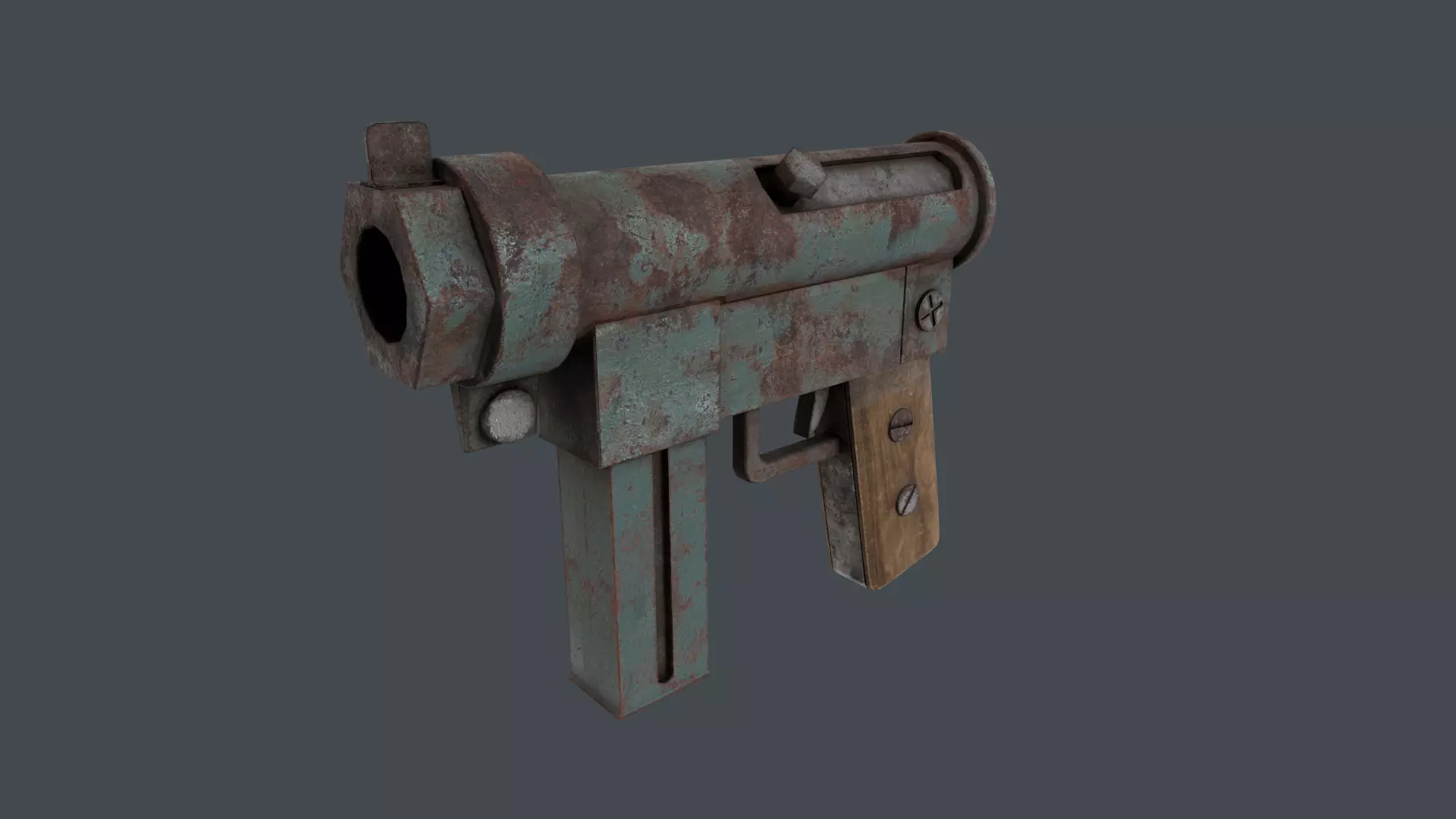 Here is a gun handcrafted with scrap metal parts and raw wood. it will be perfect for your post apocalyptic environment.