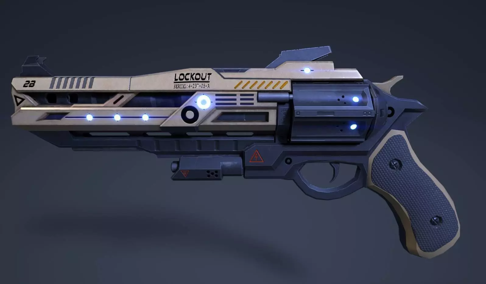 The pistol is very detailed and looks nice close up even though it has low poly count. Many parts of the pistol are separated which allows for some customization and it also allow the parts to be movable. All parts use the same one material.