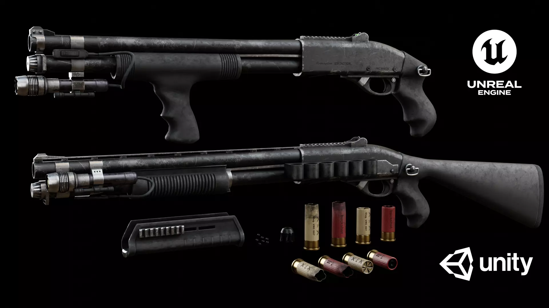 -Clean, efficient topology with no unnecessary loops-Non-overlapping UVs for cleaner baking and texturing-Realistic proportions based on the actual Remington 870 frame-Great for adding custom attachments or variants