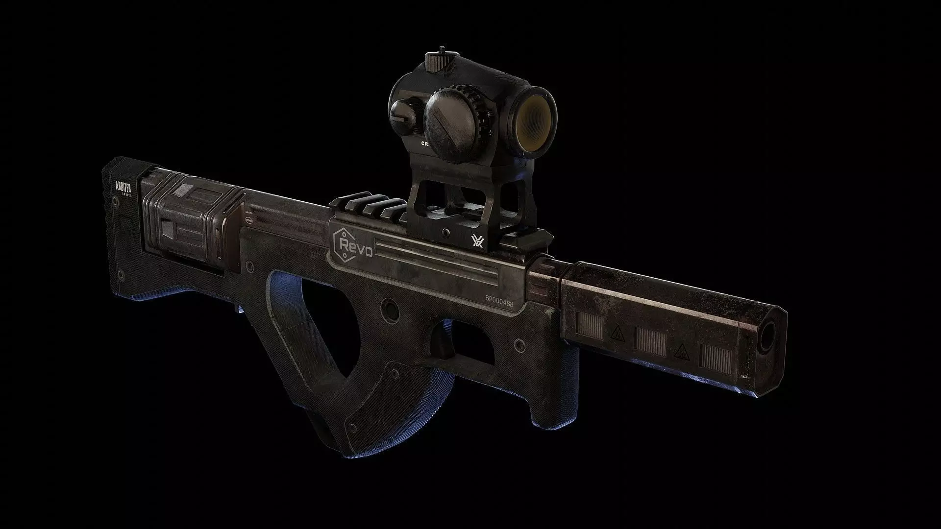 There is one 4k PBR material for gun + materials for red dot.