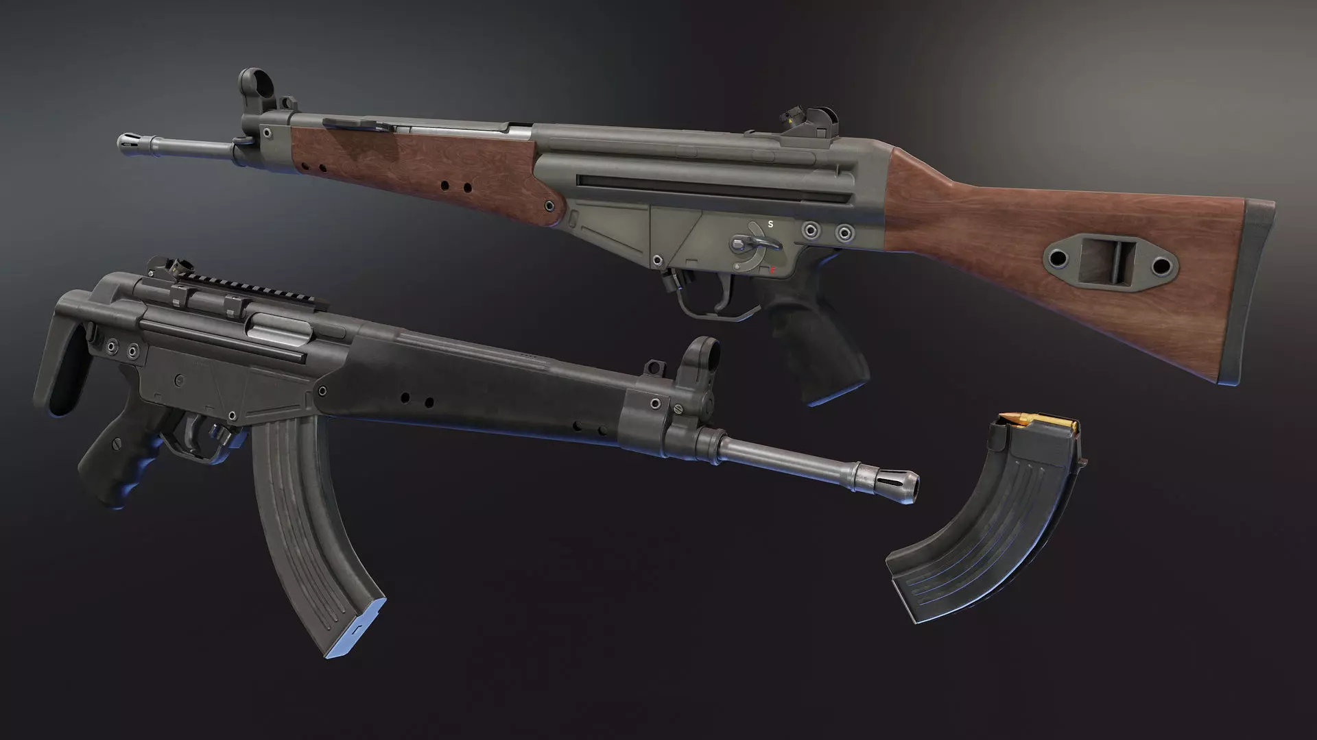 Prototype of G3 rifle chambered in soviet 7.62x39mm intermediate cartridge and few other changes like long-stroke gas piston system, locked breech and few smaller differences in desing/look(eg. its shorter here and there). After making 2 prototypes idea was moved to HK that made another prototype, HK32 that never went into to production.