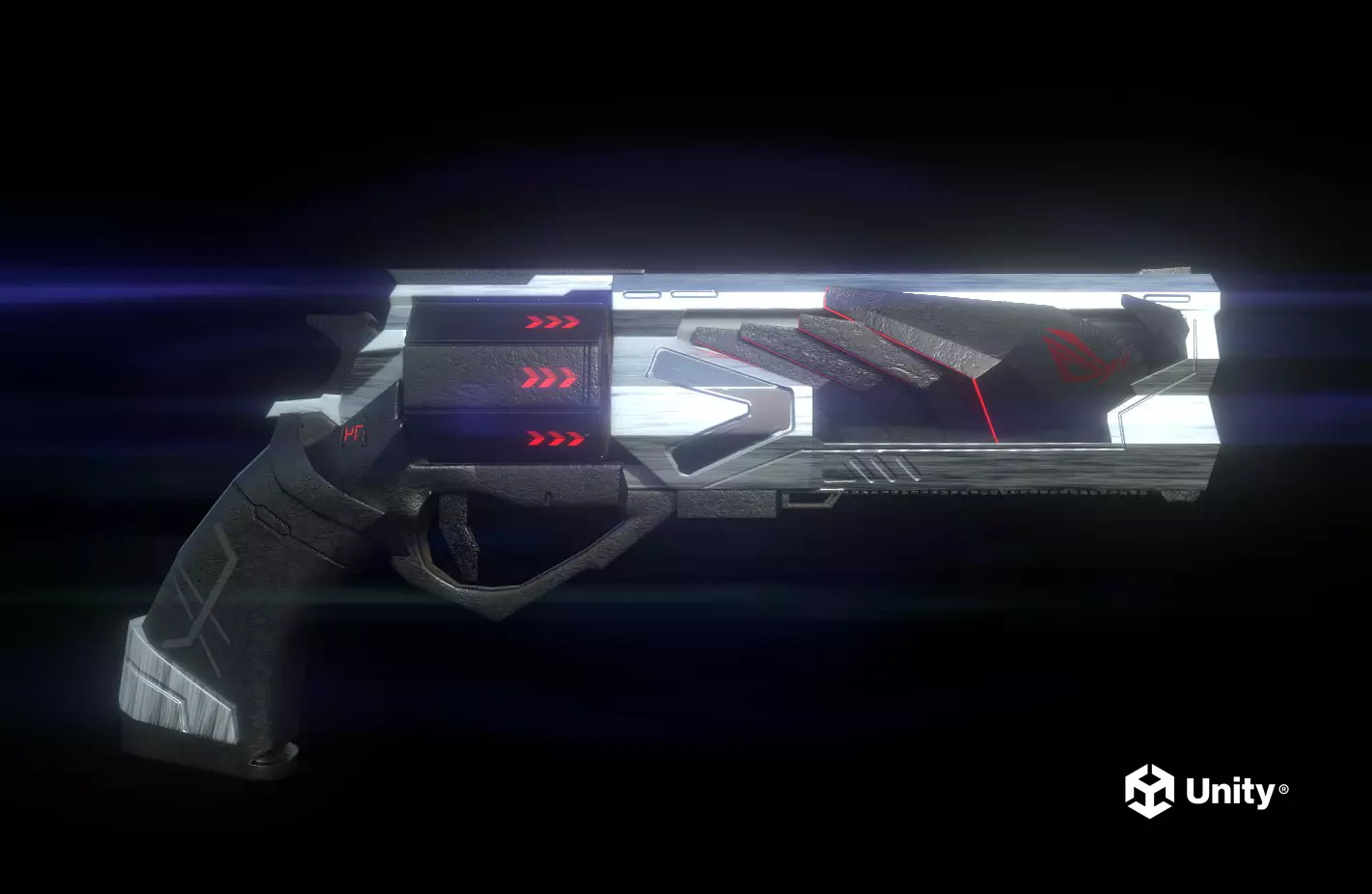 The sci-fi pistol is a sleek, futuristic weapon with a streamlined design, blending cutting-edge technology with an aesthetic that hints at advanced alien engineering. The body of the pistol is composed of a dark, matte material, giving it a rugged yet sophisticated appearance. The grip is ergonomically designed, featuring subtle ridges and grooves that ensure a secure hold, even in the most intense situations.