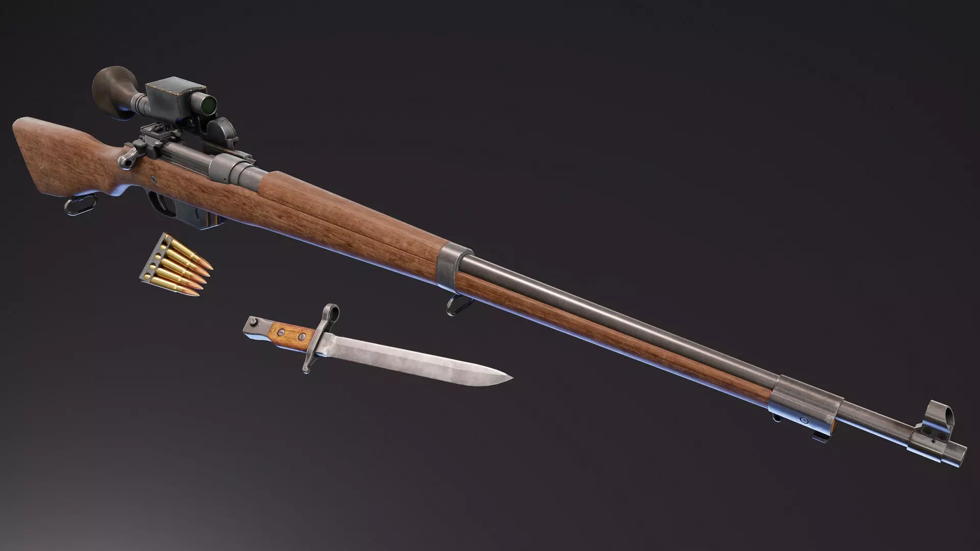 It have 4 PBR Materials in 4K, scope and bayonet are separated in case you dont need them.