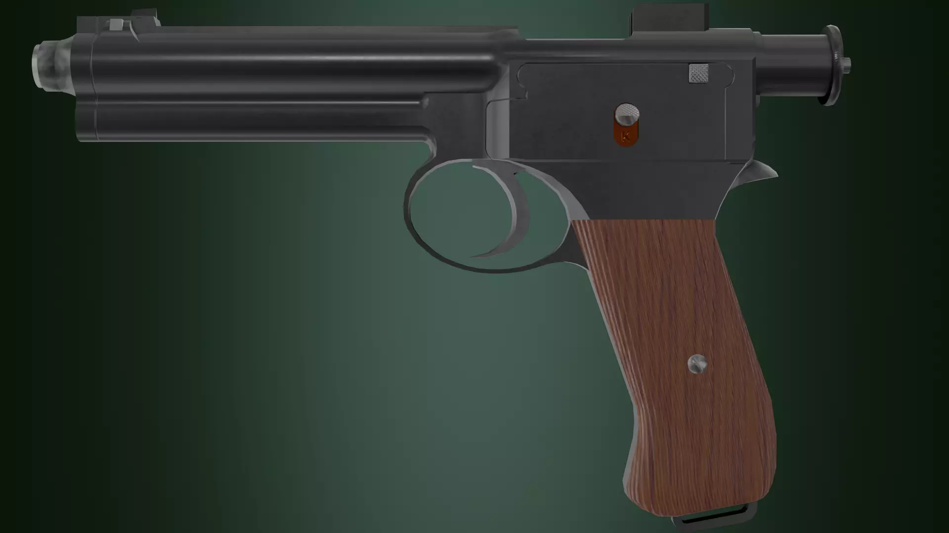 An 8mm pistol produced in Austria-Hungary (officially the Roth-Krnka M.7), chambered for the 8×19mm Roth cartridge, was in service World Wars I and II. It features quasi-double action trigger mechanism, and rotating barrel locking system. Its effective range is 75 meters. It has a 10-round magazine. It was produced from 1907 to 1914.